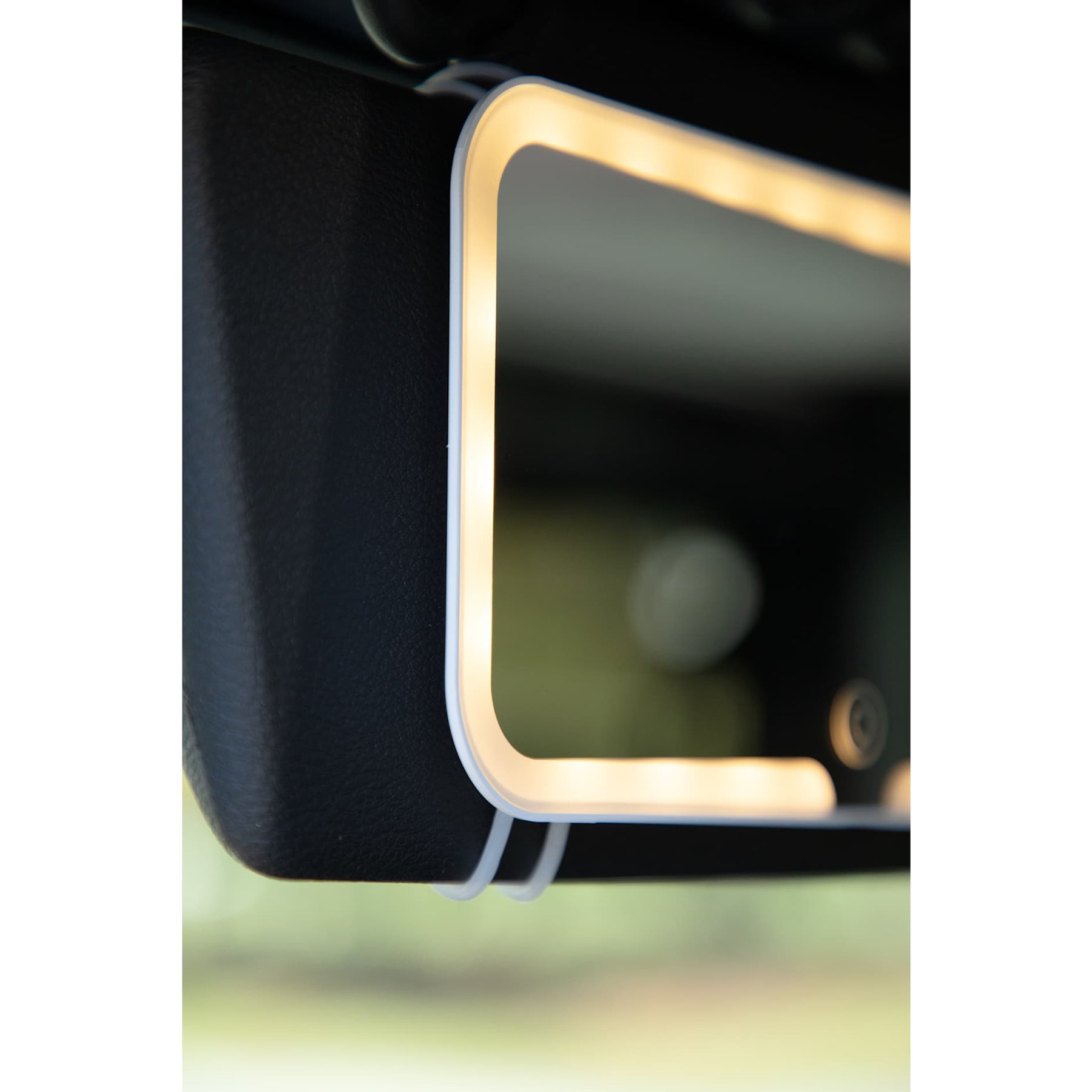 Upgrade your on-the-go routine with the Car Visor Lighted Mirror, designed for quick touch-ups and grooming wherever the road takes you. Measuring 8.7" x 3.9", this sleek, rectangular mirror offers a wide, clear view—perfect for makeup application, hair checks, or quick grooming while traveling. The adjustable silicone straps securely fasten the mirror to most standard visors without slipping or damaging the surface. Built-in LED lighting provides bright, even illumination that works in both daytime and low-light conditions, helping you look your best anytime, anywhere..