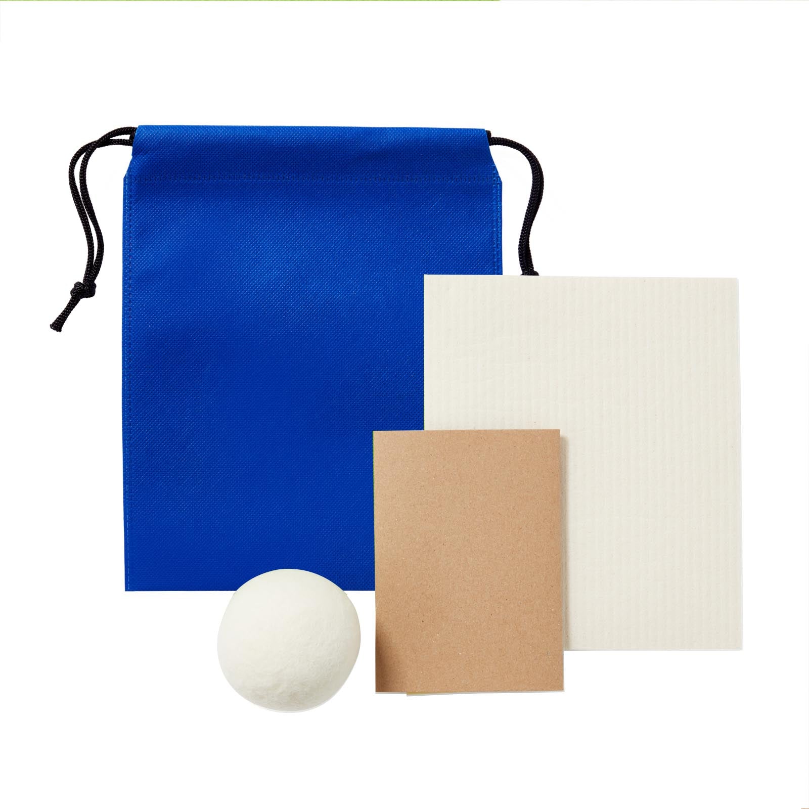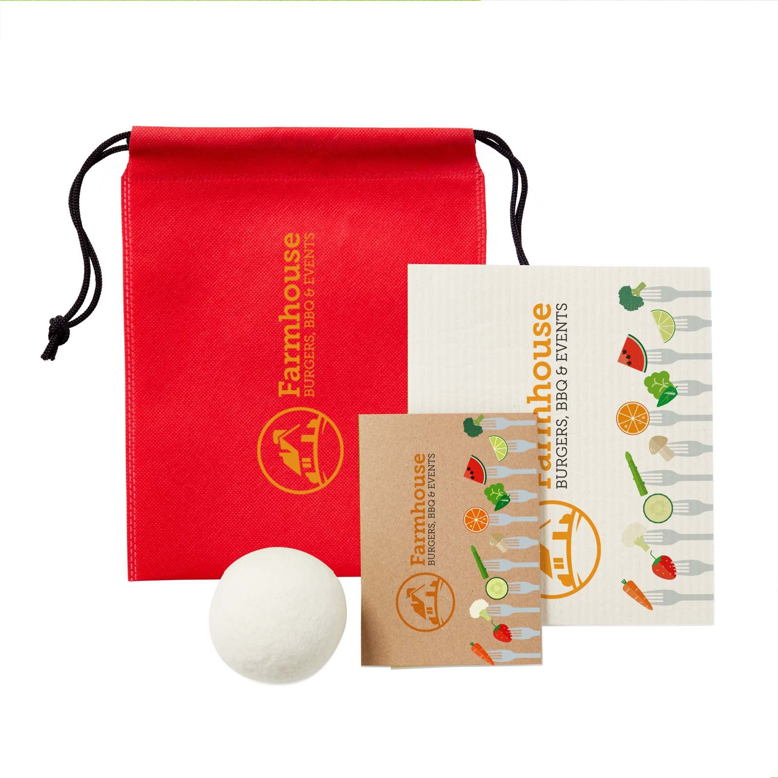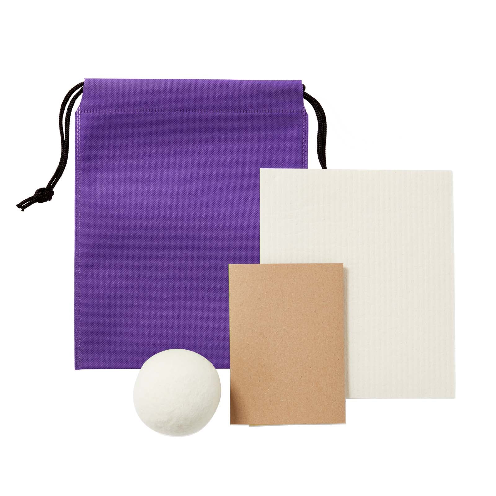 Promote your brand with these eco-friendly items! The Sustainable Starter Kit (JK-5887) includes our Small Single Bees Wrap (JK-9057), Custom Swee-Dish Cloth (JK-9055CUSTOM), and one of our 100% Pure New Zealand Wool Dryer Balls (JK-9040), all in a reusable Non-Woven Drawstring Pouch (JK-0067.) Pricing includes a full color imprint on the Bees Wrap and dishcloth and 1 color on the pouch.