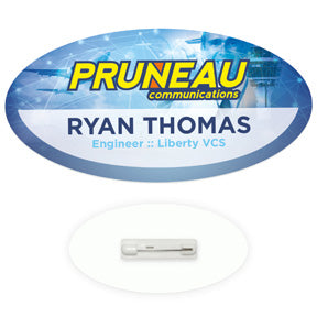 Plastic oval name tag. Identify yourself with these vibrant full color tags.