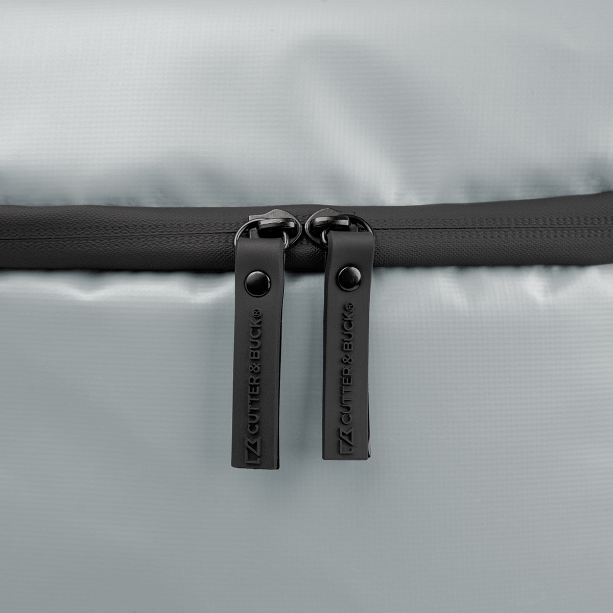 Made Of 500D PVC Tarpaulin With 15C Gray PEVA 6MM PE Foam Lining. Double Zippered Main Compartment. Front Zippered Pocket. Double Top Zippered Pocket. Adjustable Padded Shoulder Straps And Web Carrying Handle. Side Daisy Chains For Attaching Gear, Etc. Side Mesh Pocket. Includes Bottle Opener. Signature Cutter & Buck® Lining. Cutter & Buck® Rubberized Zipper Pulls. Holds Up To 18 Cans. Spot Clean/Air Dry..