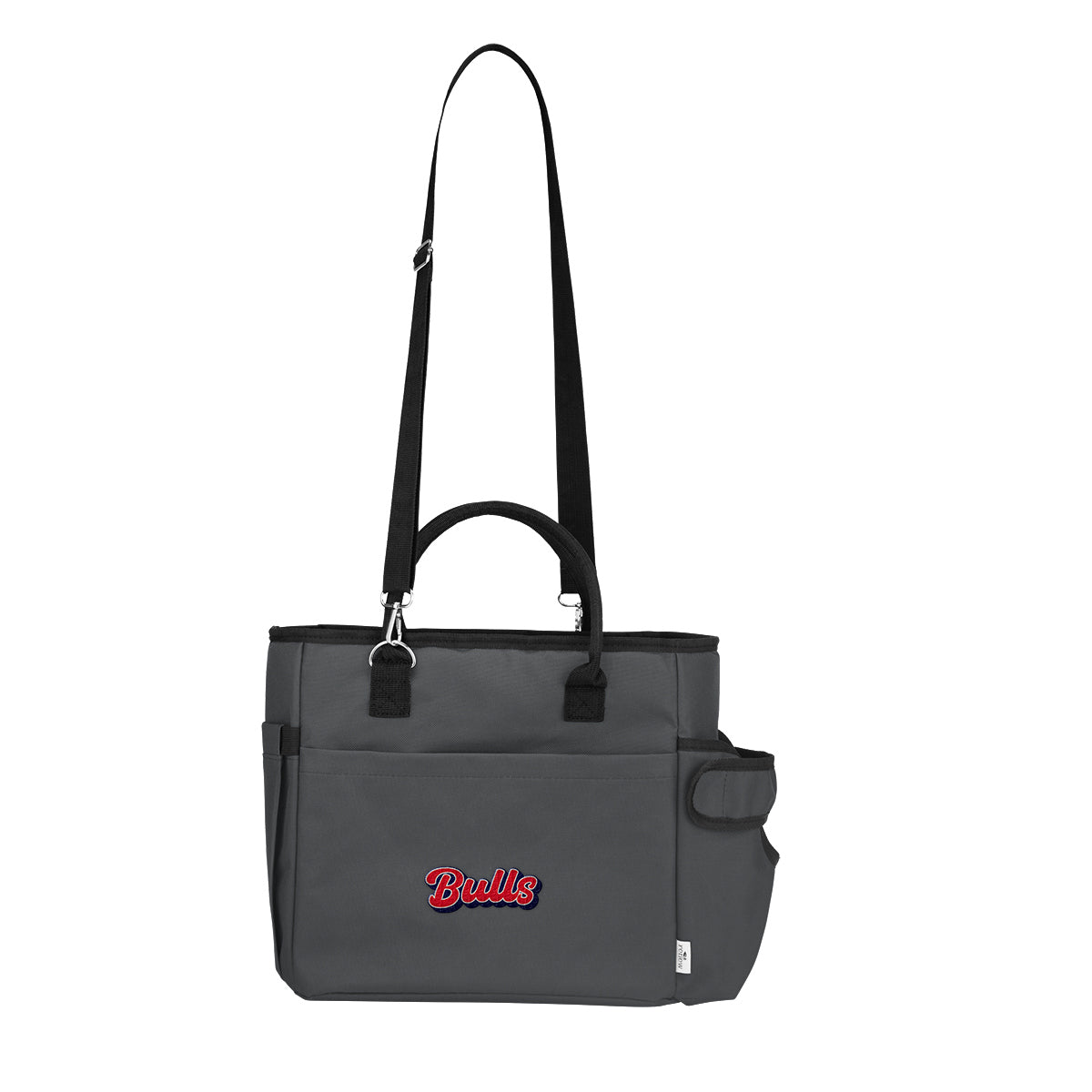 Made Of 600D rPET With Gray PEVA Lining And 5MM PE Foam. Made From Post Consumer Recycled Materials. Recycled Polyester (rPET) is Obtained By Melting Down Existing Plastic Bottles And Other Material Sources To Create New Polyester Fiber. Lining, Elastic Band, Webbing, Zipper, Buckle, Foam, Handles, Strap And Label Are Not rPET. Zippered Main Compartment. Front Slip Pocket. Side Pocket With Hook And Loop Closure Holds A 40 Oz. Tumbler With Or Without Handle. Elastic Slip Pocket. Adjustable/Removable Shoulder Strap And Carrying Handles With Snap Closure. Holds Up To 16 Cans. 19" Carrying Handles. 49" Shoulder Strap. Spot Clean/Air Dry..