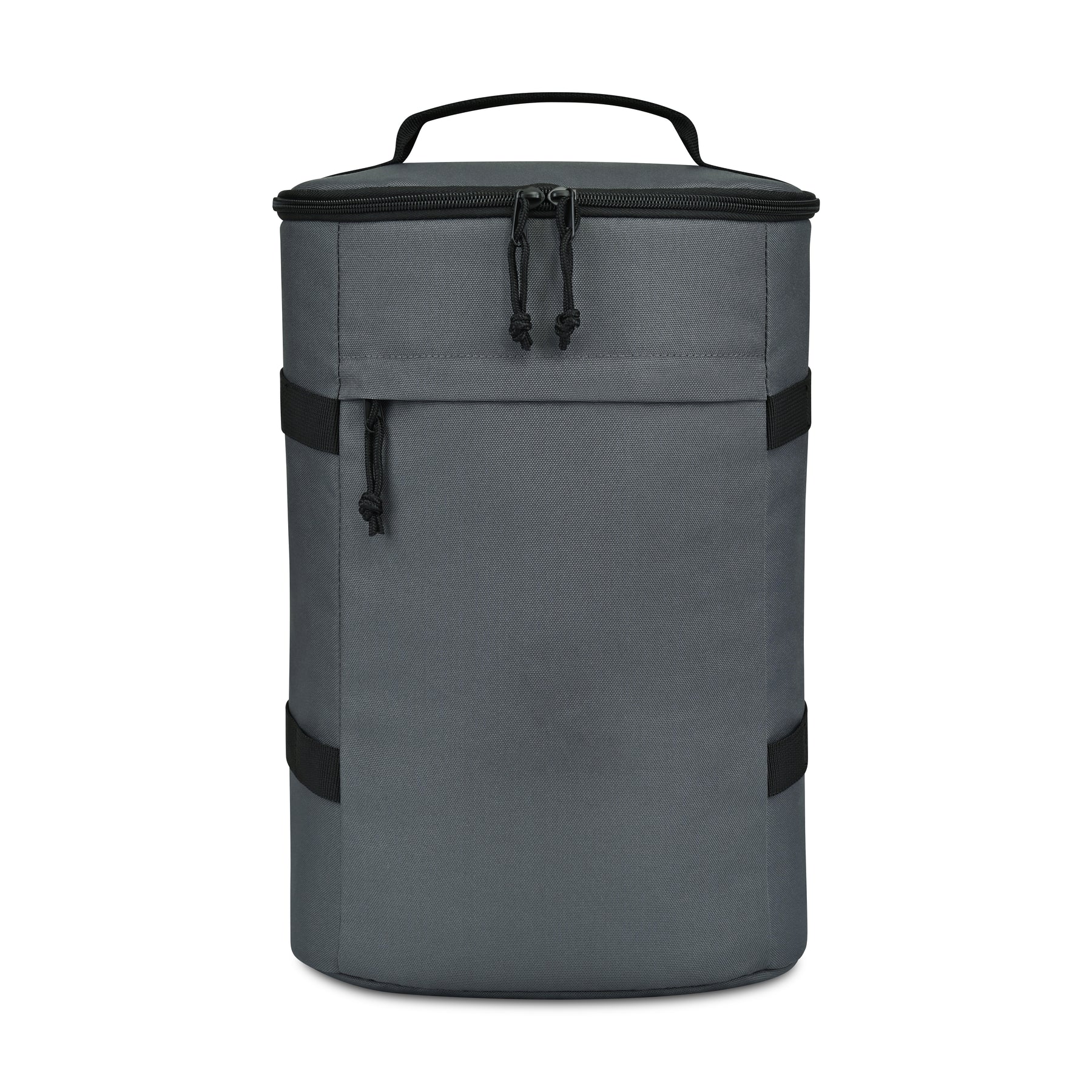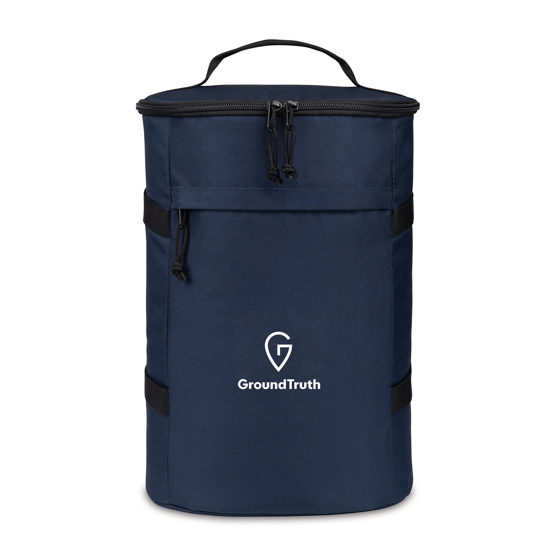 This modern backpack cooler blends function and sustainability with recycled materials and thoughtful design. It holds up to 20 cans in a spacious insulated compartment and includes comfort-fit straps, daisy chain attachment points, and a front zip pocket. PVC Free..