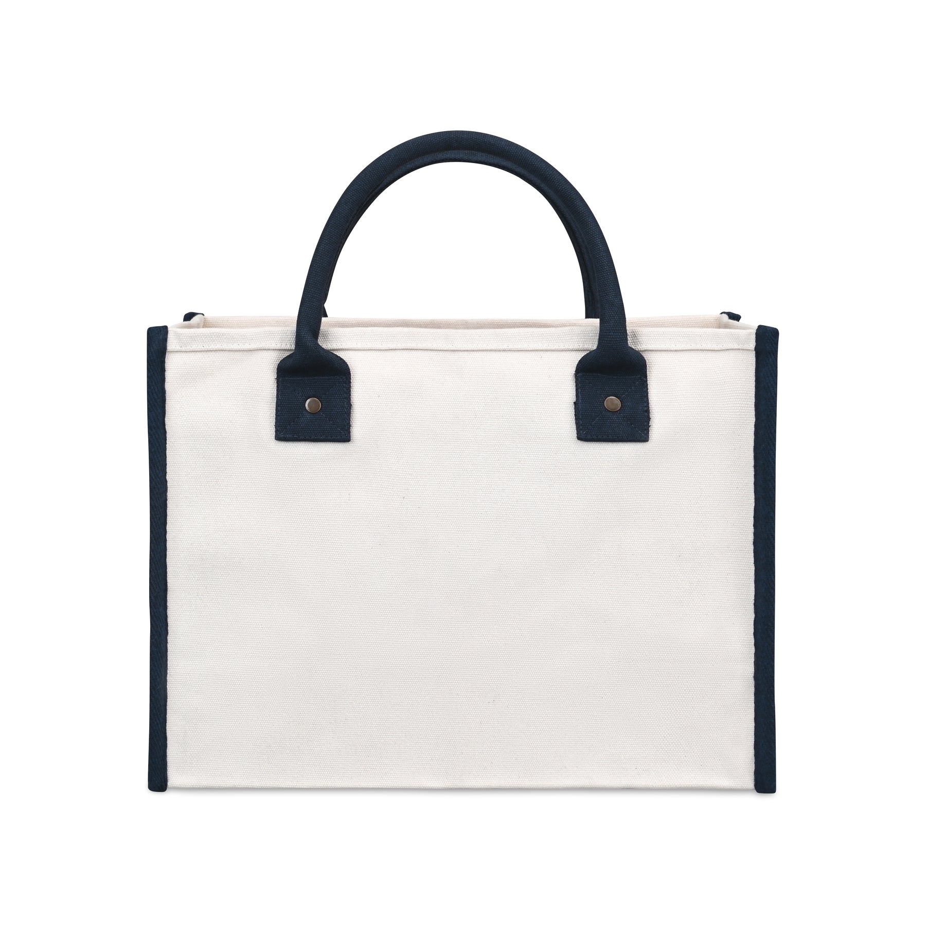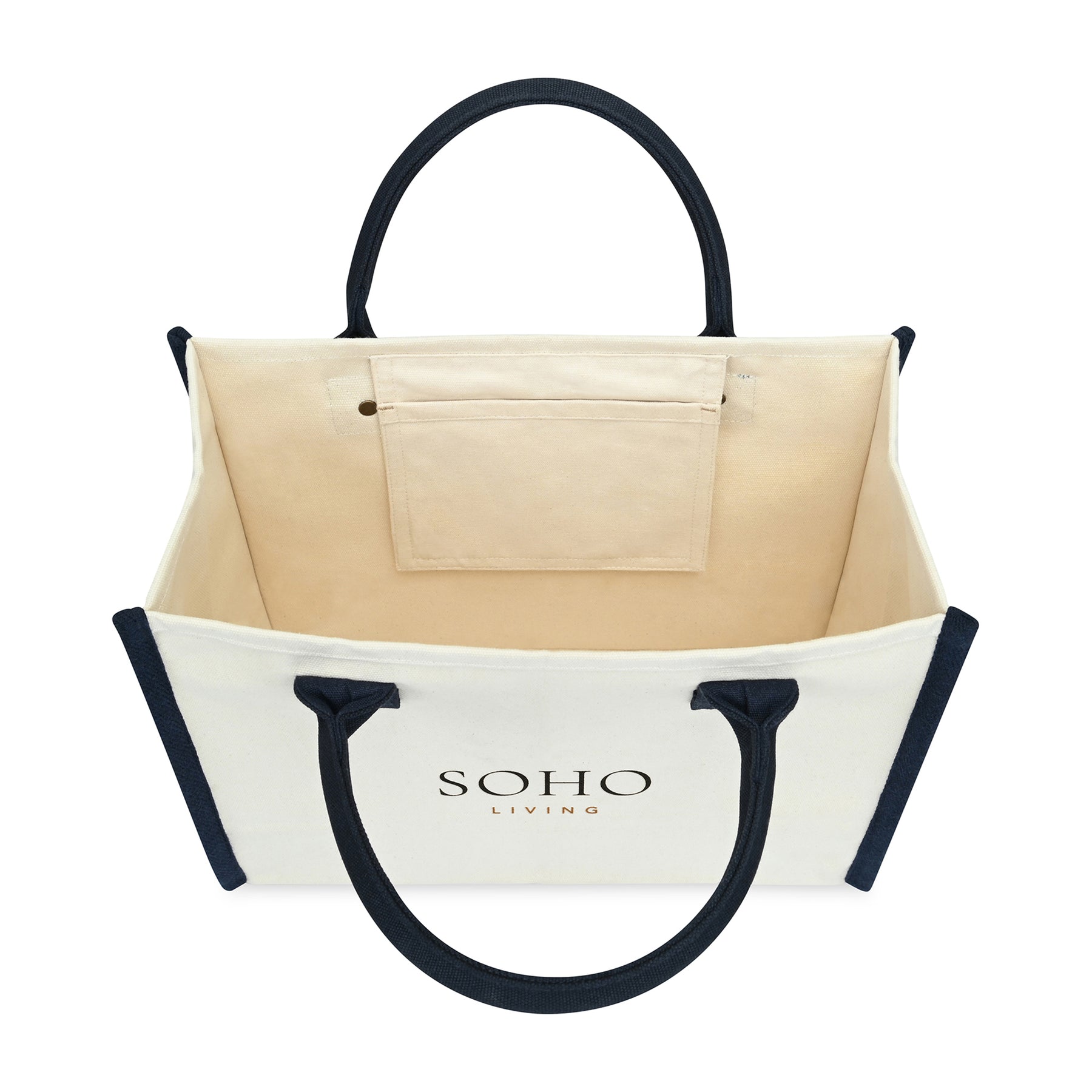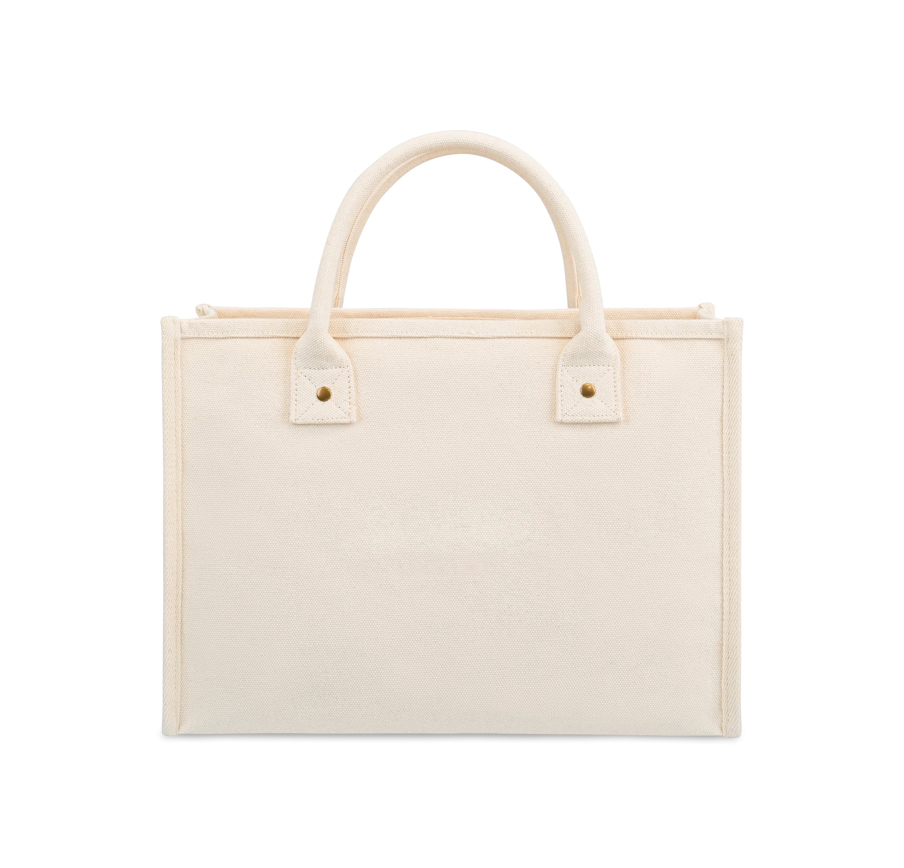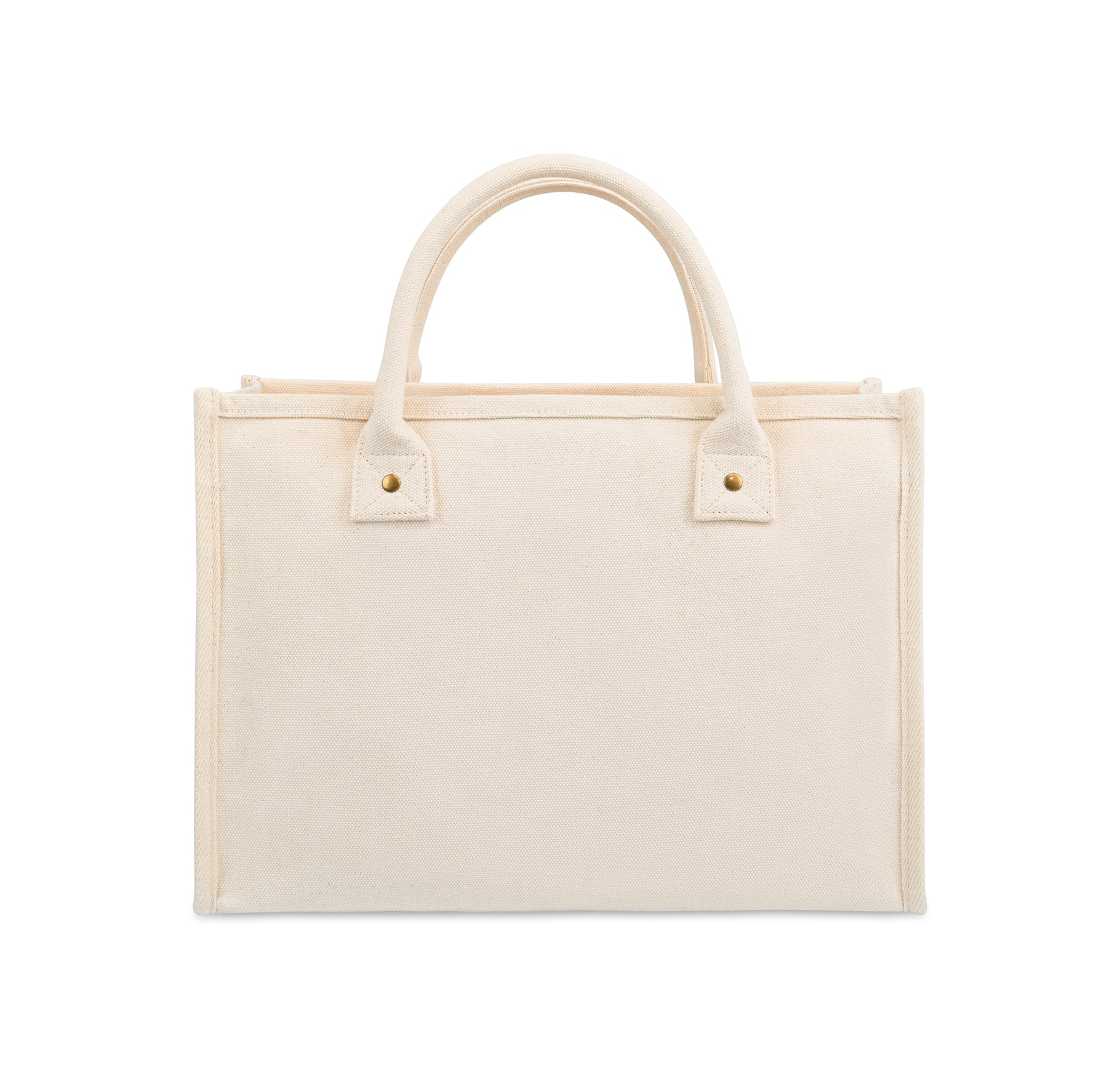 Timeless carryall. The Market Street Tote is the ultimate week-to-weekend bag, crafted from durable canvas with antique brass rivet details. Spacious enough for work or market runs, it features an interior pocket and rolled padded handles for comfort. Add a logo for a standout touch. Perfect for gifting—Eco-bow box #978 fits neatly inside. PVC free..