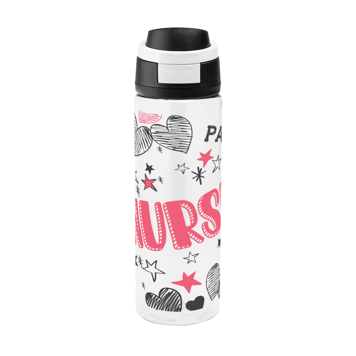Made With rPET Material. Made From Post Consumer Recycled Materials. Recycled Polyester (rPET) is Obtained By Melting Down Existing Plastic Bottles And Other Material Sources To Create New Polyester Fiber. Lid Is Not rPET. Recycled PP Lid. Screw On, Spill-Resistant Sip Through Lid. Push Button To Pop Lid Open. Easy Carry Handle. Meets FDA Requirements. BPA Free. Hand Wash Recommended.