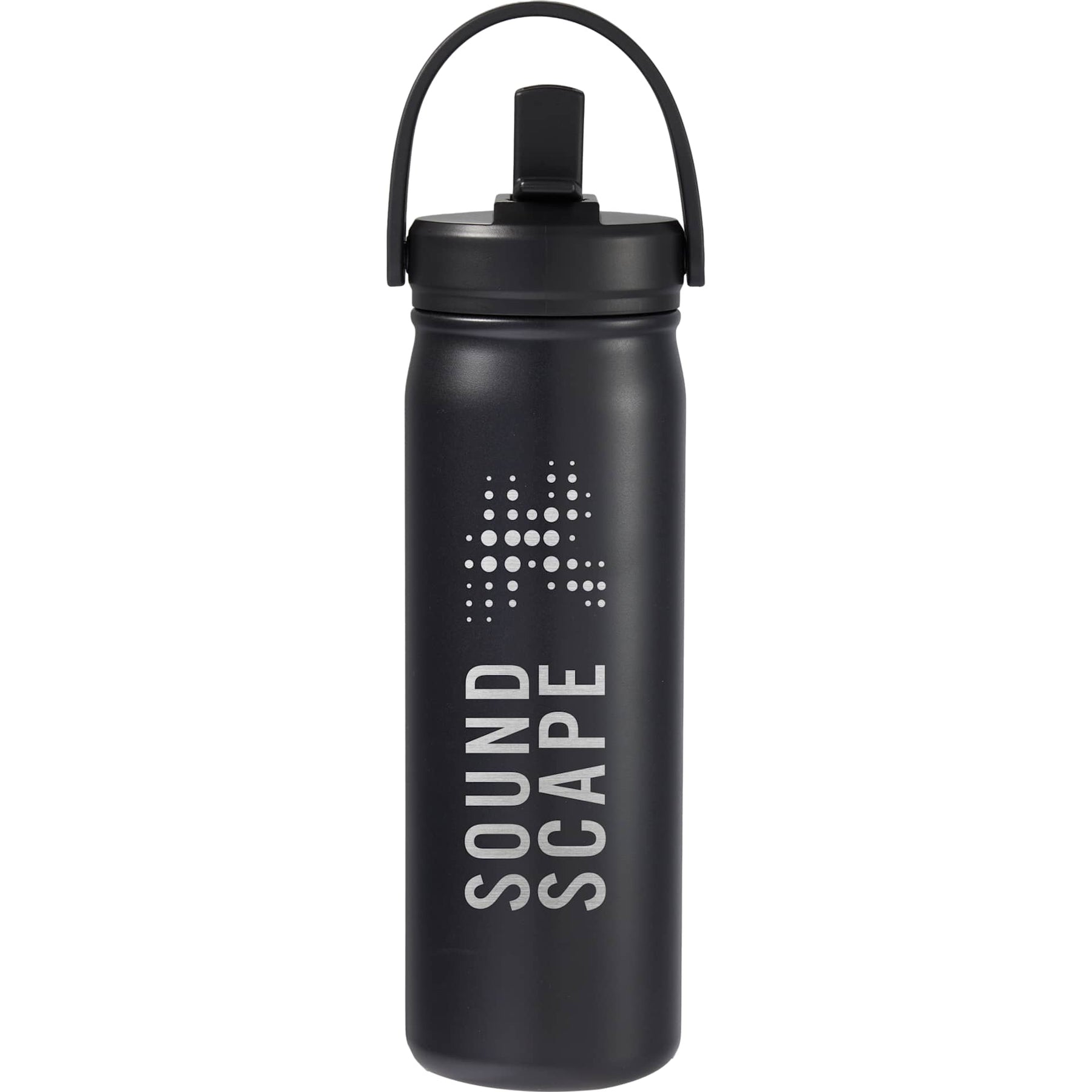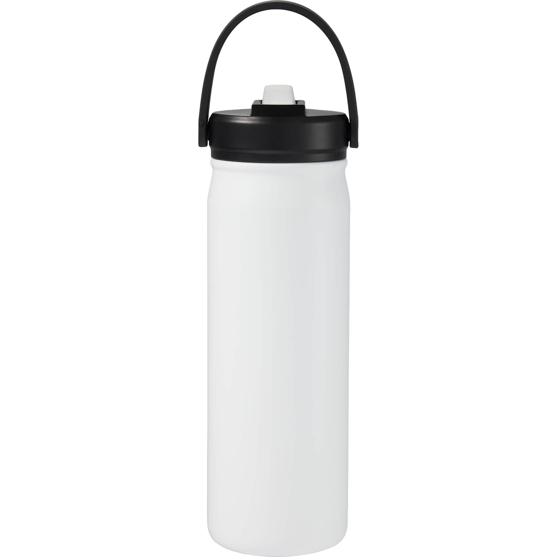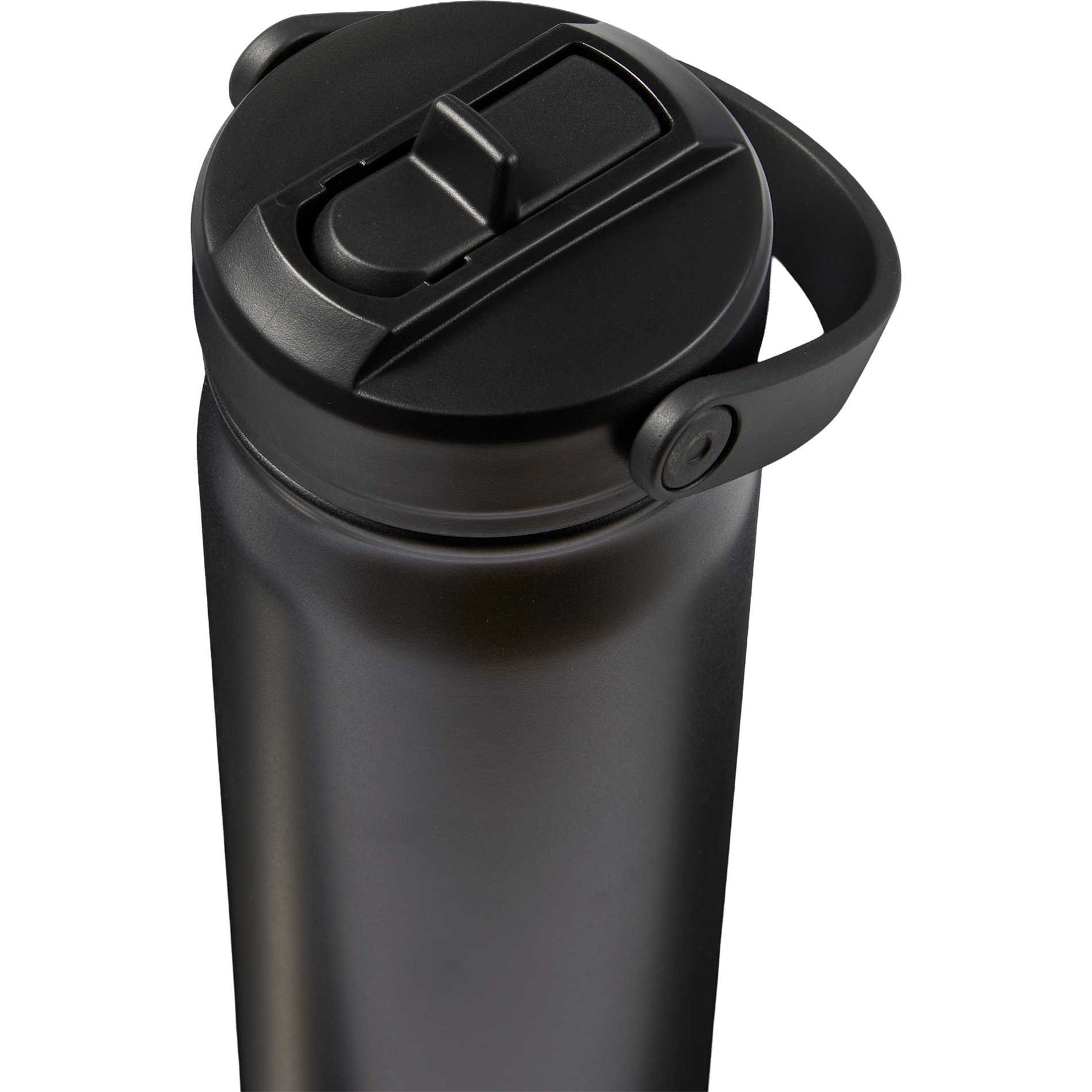 Durable, double-wall stainless steel vacuum insulated construction, which allows your beverage to stay cold for up to 15 hours. The construction also prevents condensation on the outside of the bottle. It is crafted from 91% recycled stainless steel liner and the standard stainless-steel outer. On-trend, durable matte coating. Screw-on, spill resistant lid with integrated easy drinking flip-straw and comfort soft-touch hand loop. Wide opening for comfortable filling and pouring. Perfect for ice cubes. Fits most standard car cup holders. Note: “This product can hold hot beverages, but drinking hot beverages with the straw is not recommended.” Remove lid to allow beverage to cool. Hand wash only 20oz..