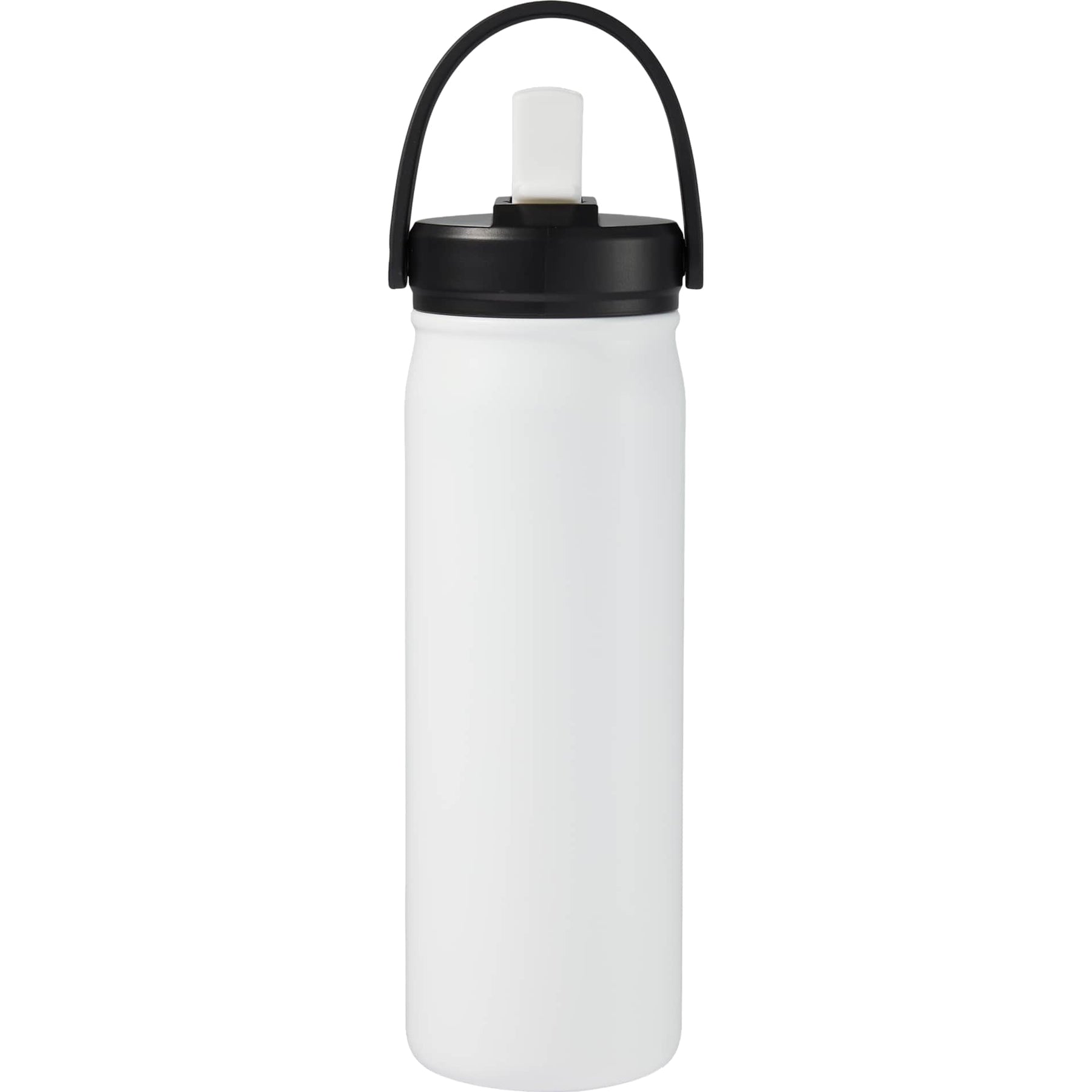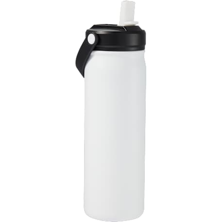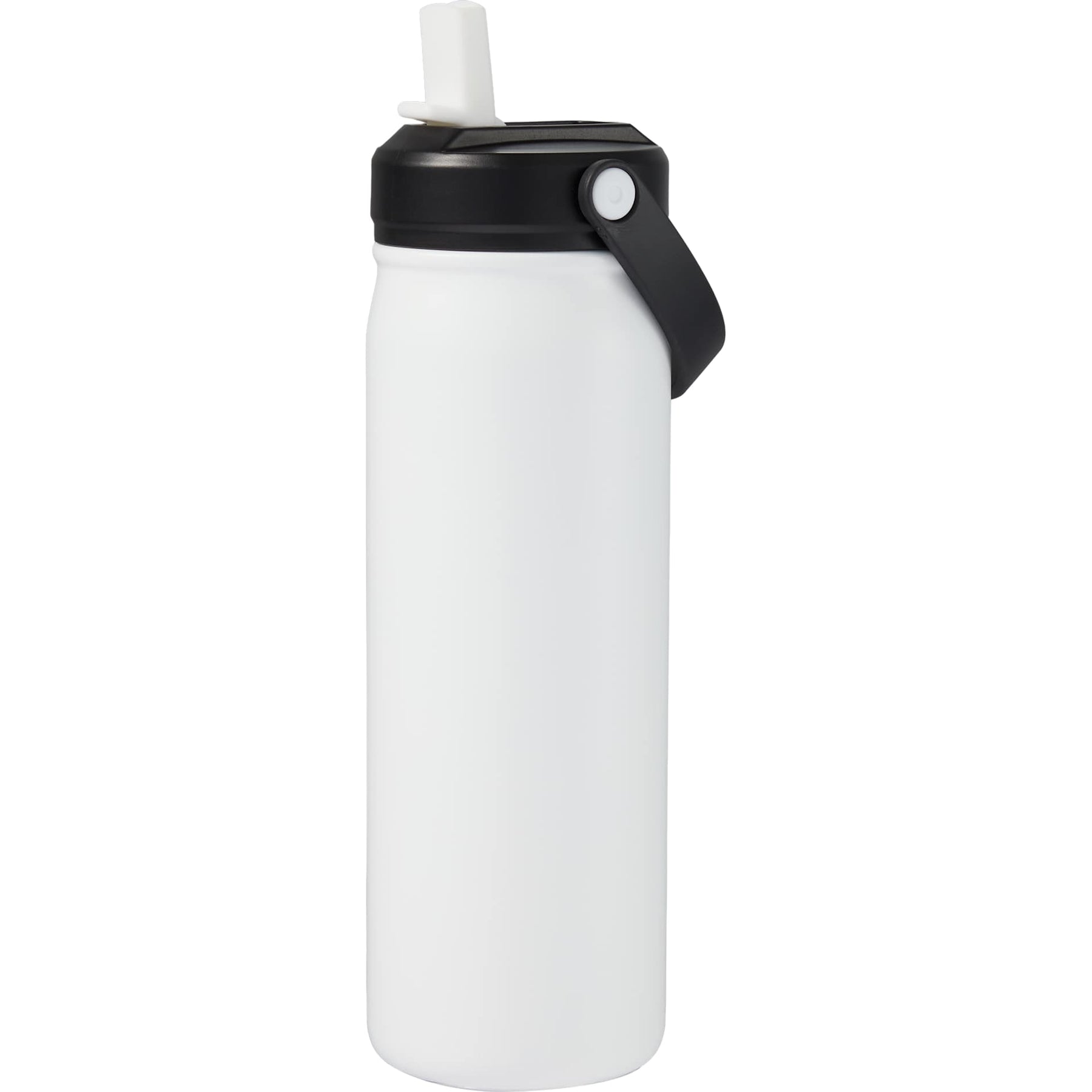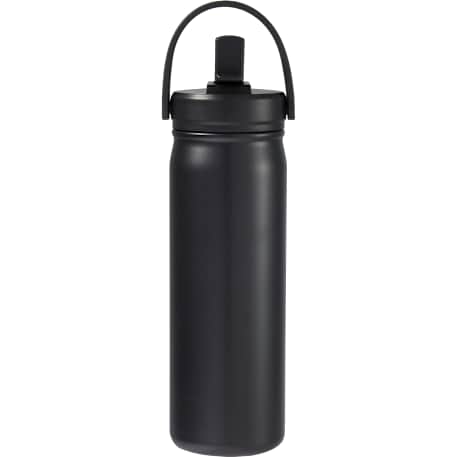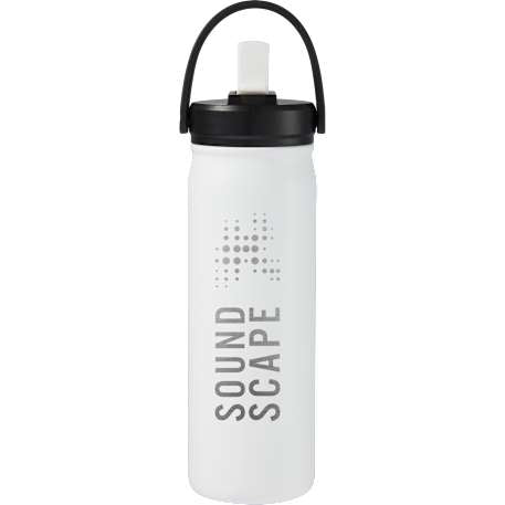 Durable, double-wall stainless steel vacuum insulated construction, which allows your beverage to stay cold for up to 15 hours. The construction also prevents condensation on the outside of the bottle. It is crafted from 91% recycled stainless steel liner and the standard stainless-steel outer. On-trend, durable matte coating. Screw-on, spill resistant lid with integrated easy drinking flip-straw and comfort soft-touch hand loop. Wide opening for comfortable filling and pouring. Perfect for ice cubes. Fits most standard car cup holders. Note: “This product can hold hot beverages, but drinking hot beverages with the straw is not recommended.” Remove lid to allow beverage to cool. Hand wash only 20oz..