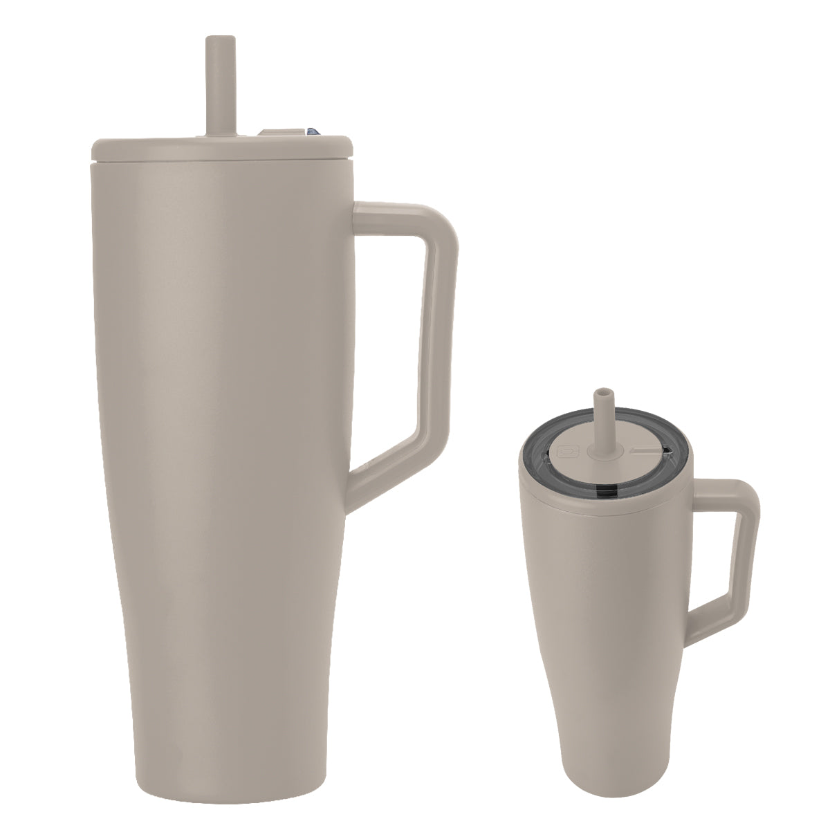 Made Of Stainless Steel . Powder Coated Finish. BevGuard™ Insulation To Keep Beverage Ice-Cold And Carbonated For 24+ Hours. Screw On Ü-Turn™ Spill-Resistant Lid With ColdKey™ Stainless Steel Straw. Simply Turn The Mode Indicator To The Appropriate Position For Stress-Free Sipping Mode To Open Straw And Sip, Leakproof Mode To Close Straw, Or Cleaning Mode To Clean. 100% Leakproof When Locked. Includes A Rubber Grip That Makes Opening Easy Without Having To Touch The Straw. Comfort Grip Handle. Non-Slip Base. Cup Holder Friendly . Meets FDA Requirements . BPA Free. Hand Wash Recommended ..