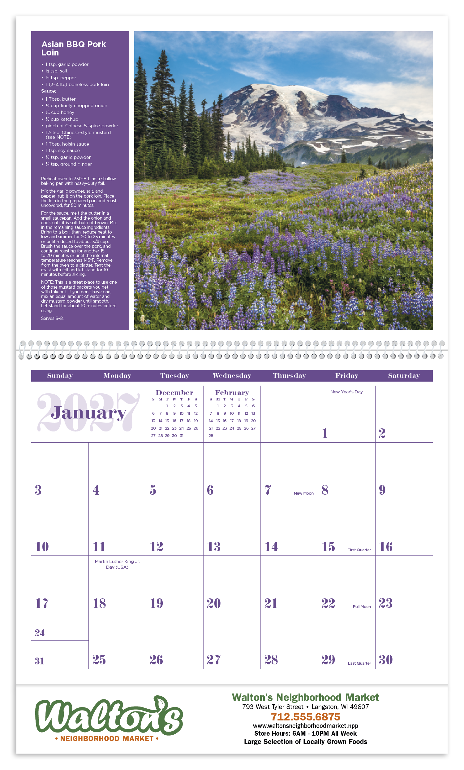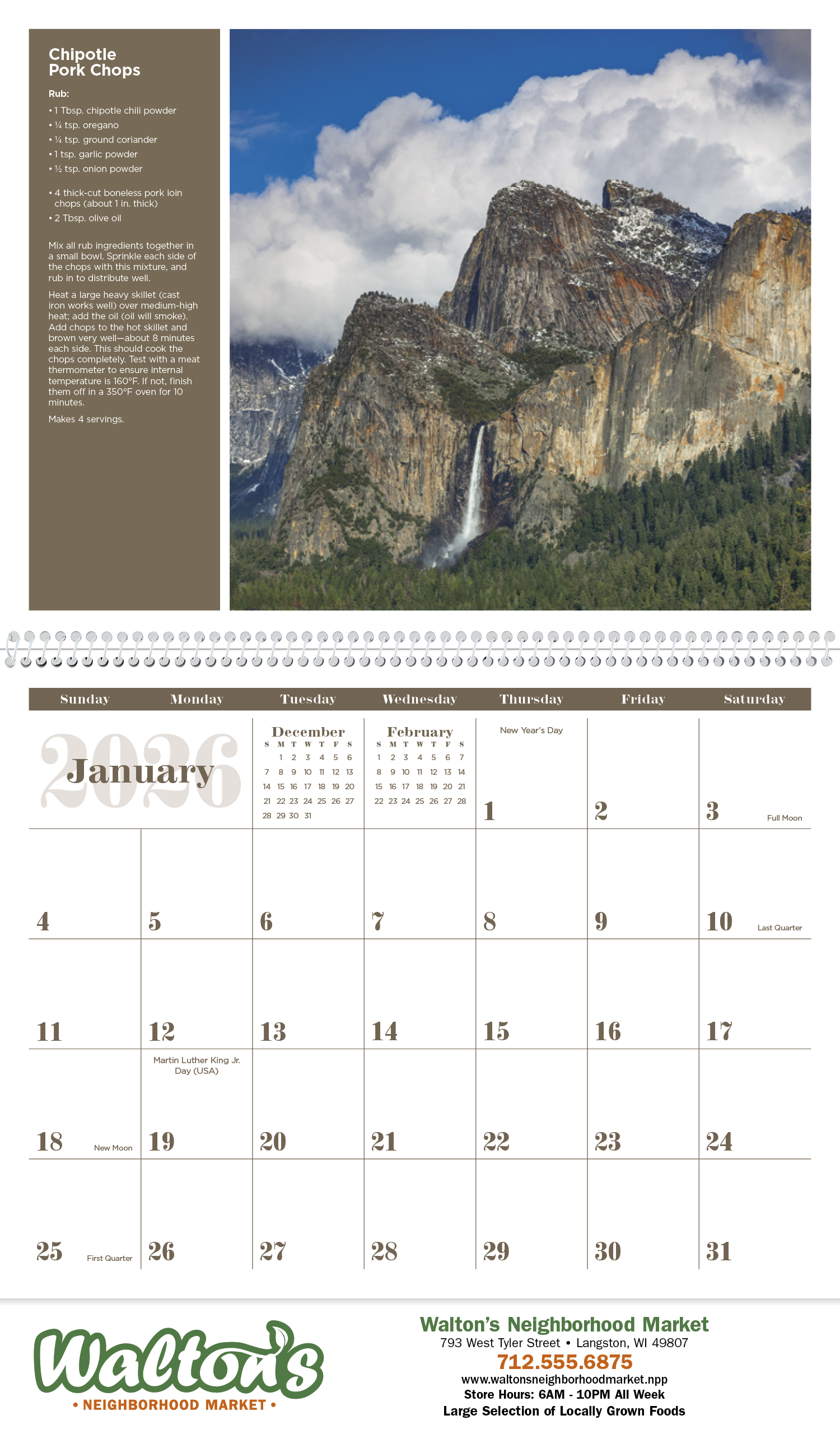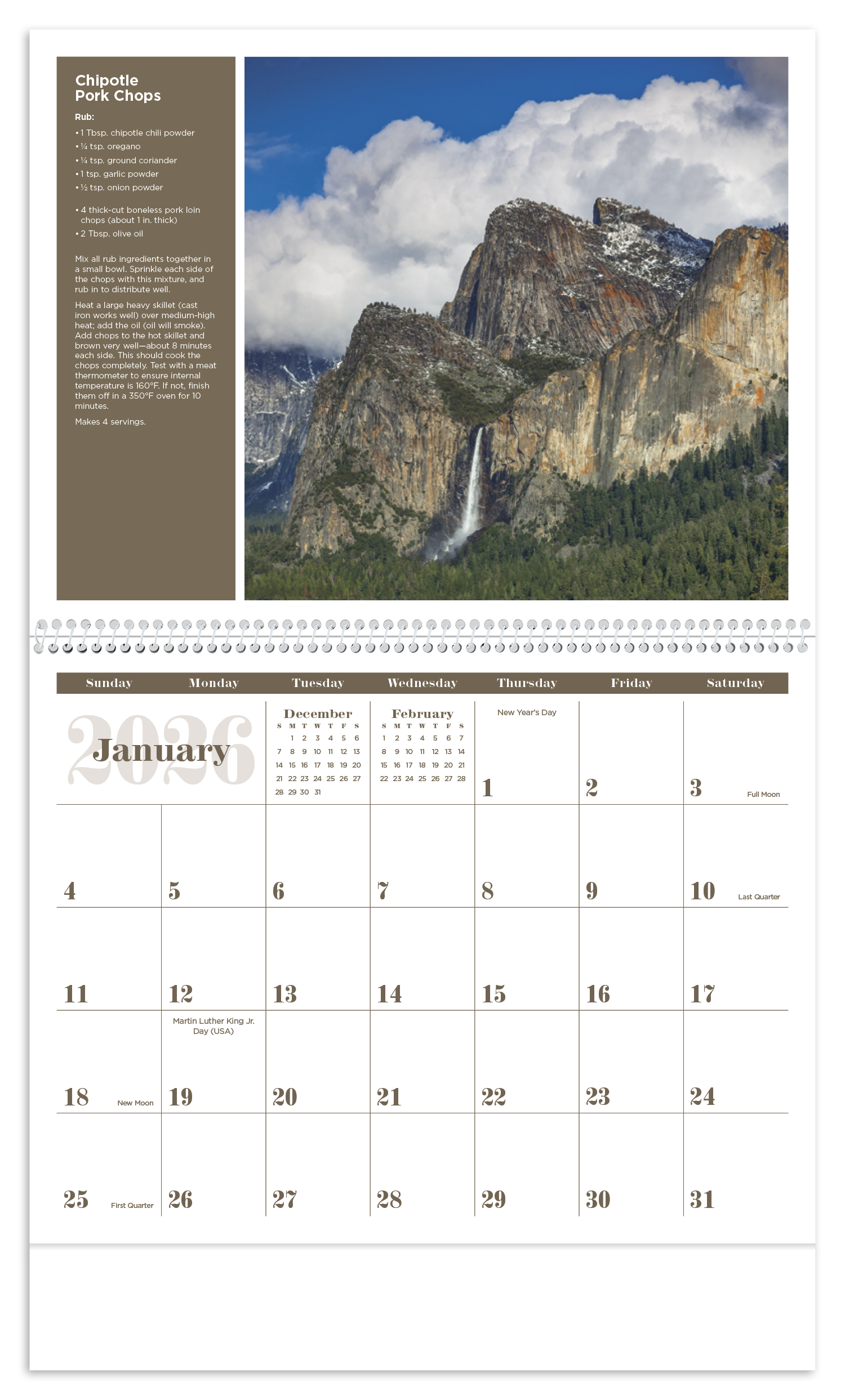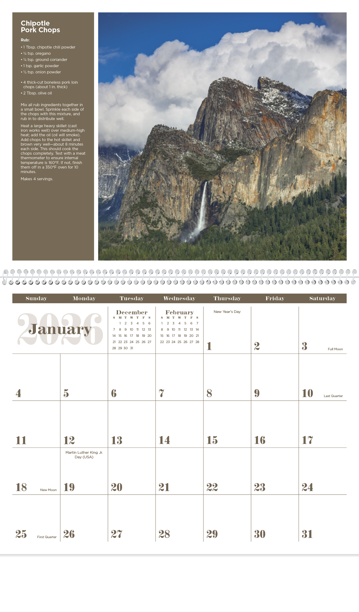 This calendar is pleasing on many levels with beautiful images and delicious recipes from across the United States. The FSC® label means that the materials used for this product come from well-managed FSC®-certified forests and other controlled sources..
