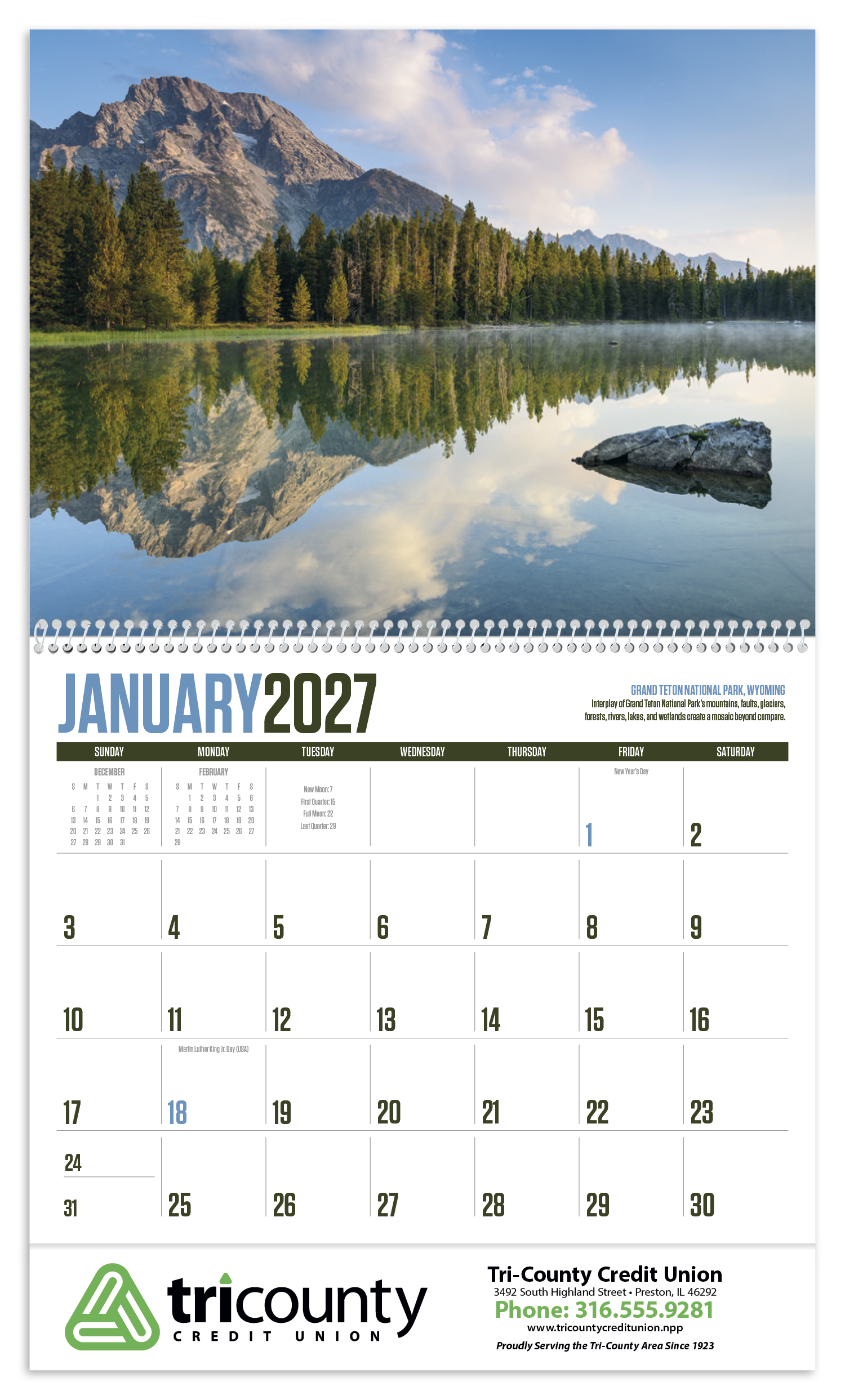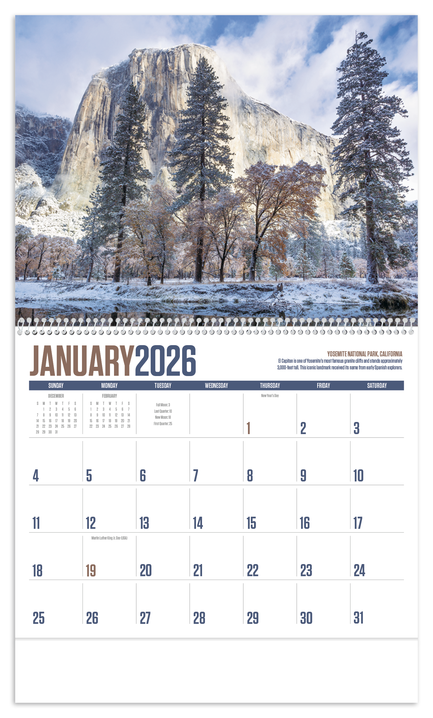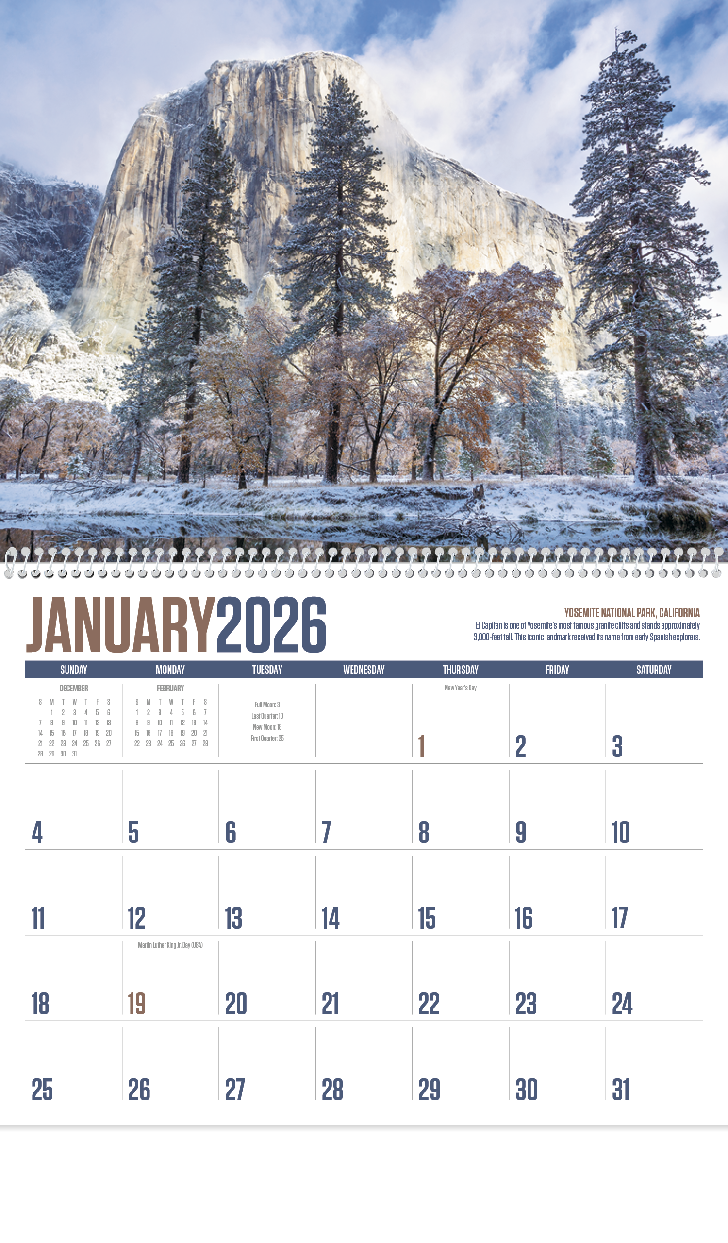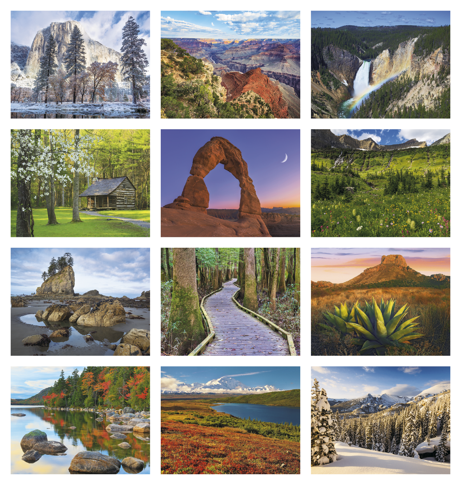 Explore the beauty of America's diverse national parks. Each month lets you escape to another natural wonder. The FSC® label means that the materials used for this product come from well-managed FSC®-certified forests and other controlled sources..