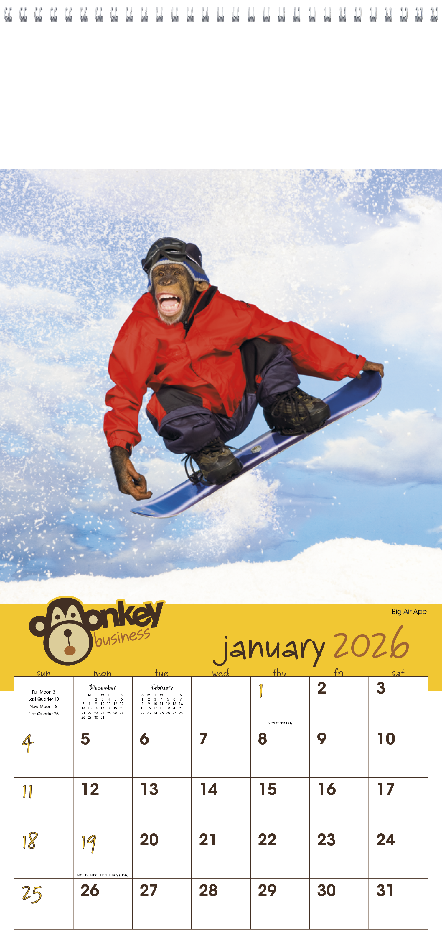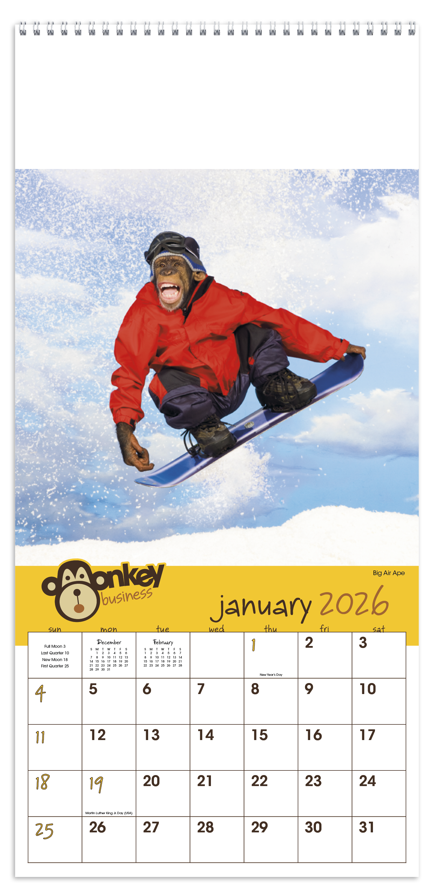 For a business that likes a little humor, this is the perfect calendar. No matter who receives this calendar, they are sure to enjoy the monkey mischief shown each month. The FSC® label means that the materials used for this product come from well-managed FSC®-certified forests and other controlled sources..