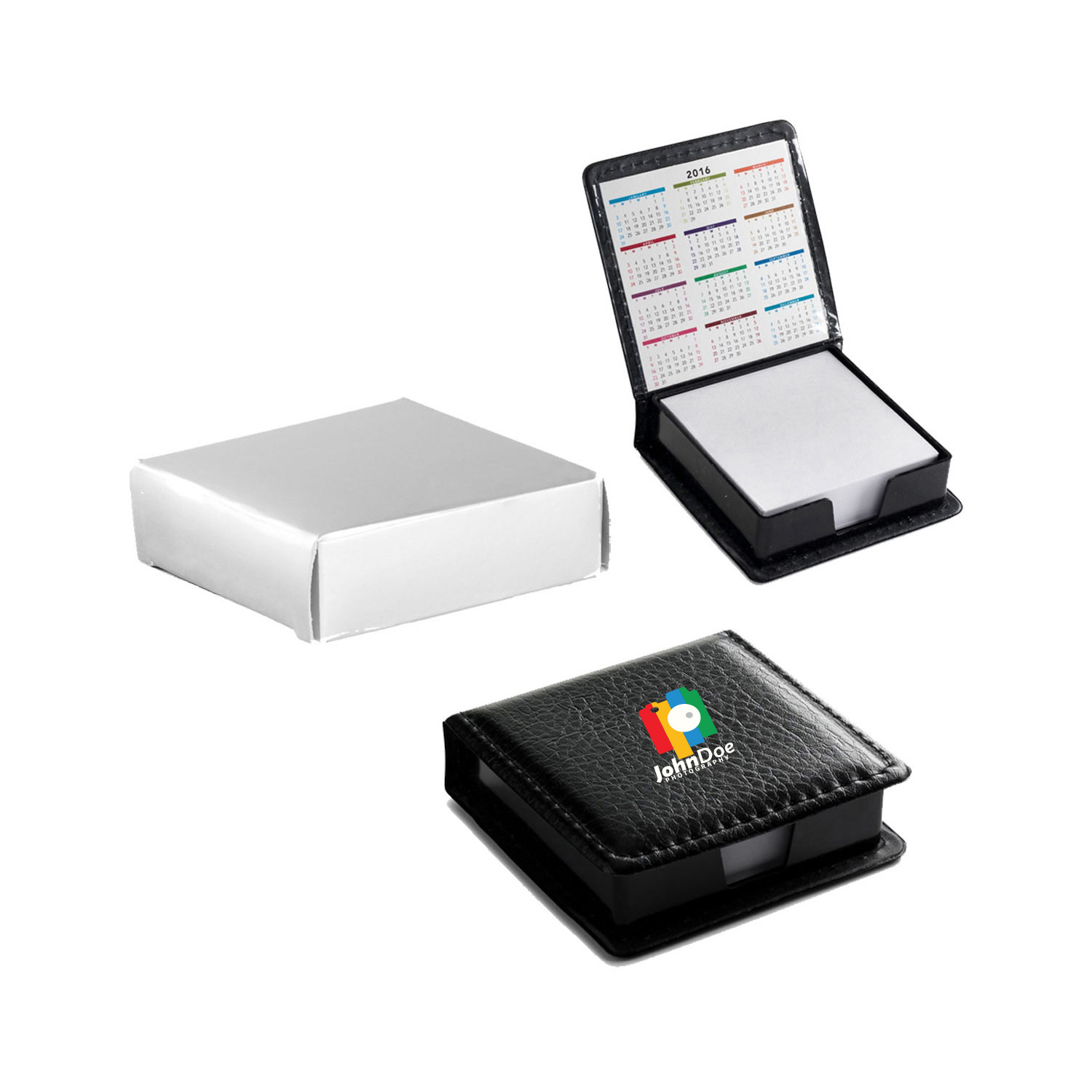 Features a sleek black leatherette finish, this flip-top note paper keeper includes 200 white sheets of paper and a double-sided 2-year calendar card. Individually packed in a silver paper gift box, it’s a refined choice for corporate gifting..