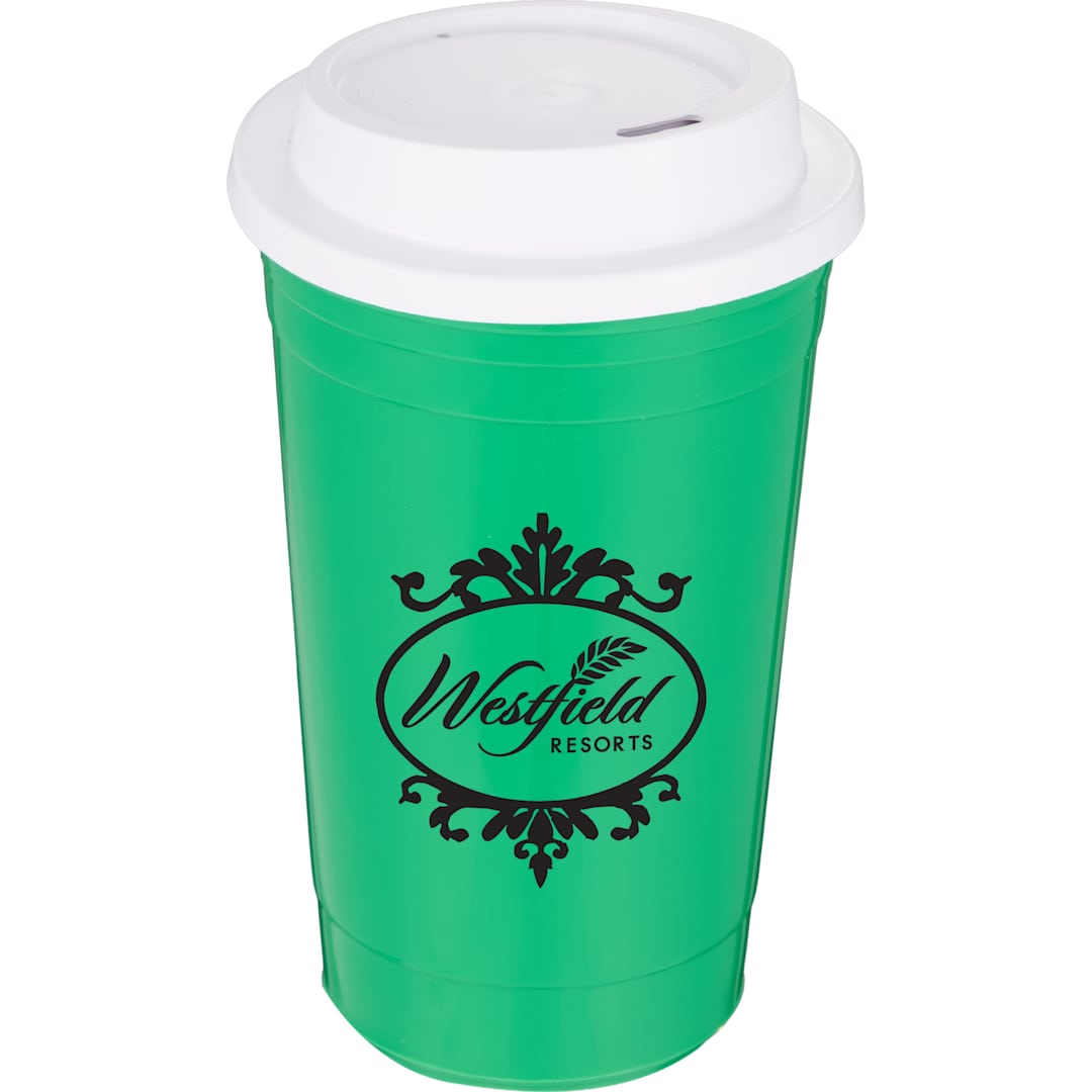 The Traveler 16oz is perfect for Tailgating, Parties and Company Picnics Double-Wall construction for hot or cold drinks Made in USA hand wash..