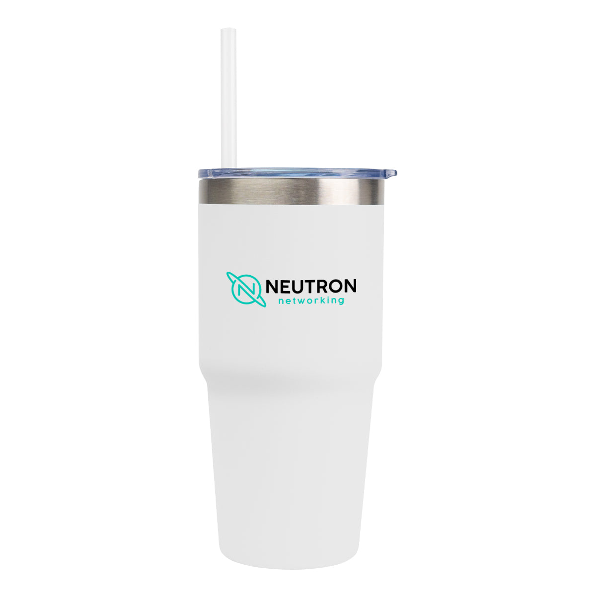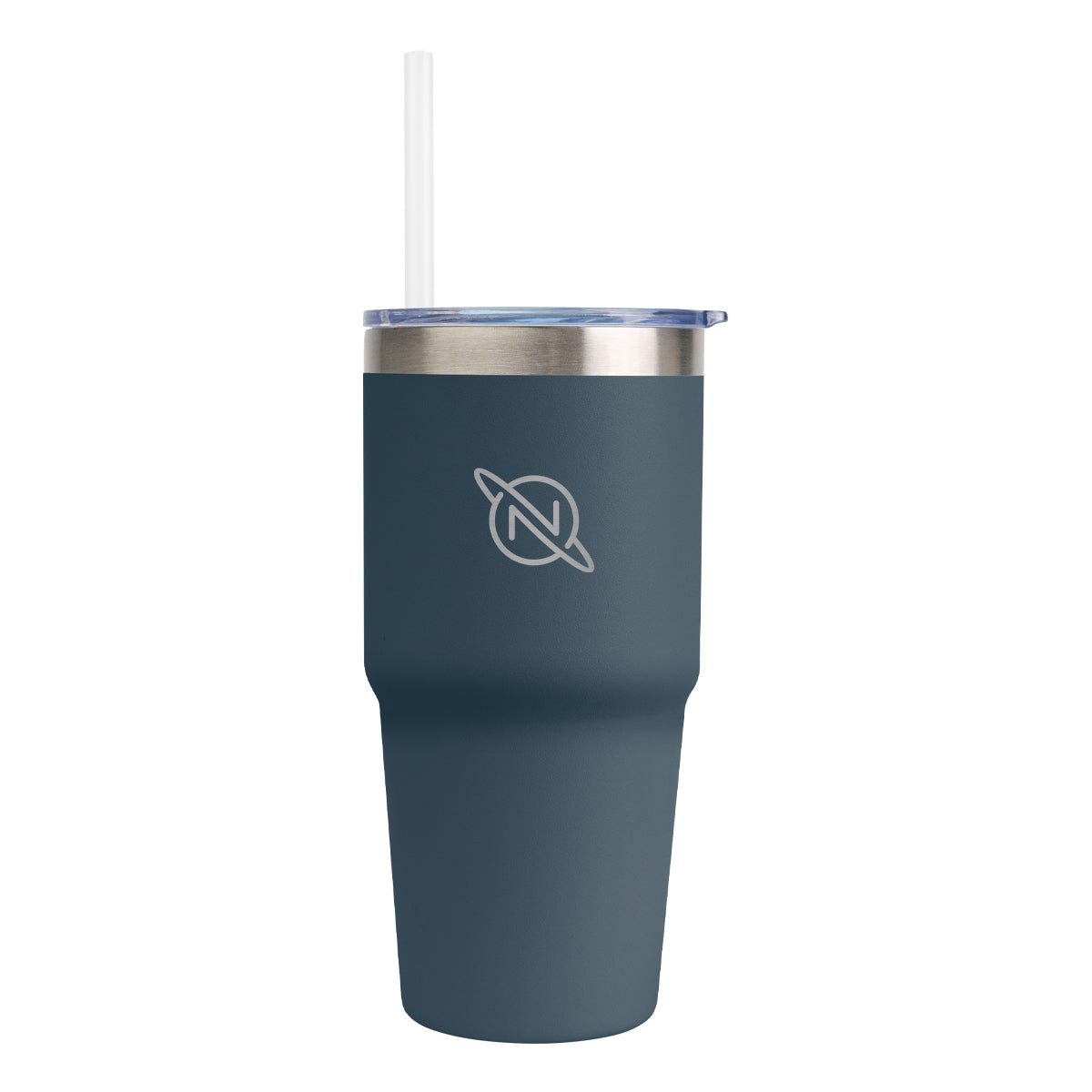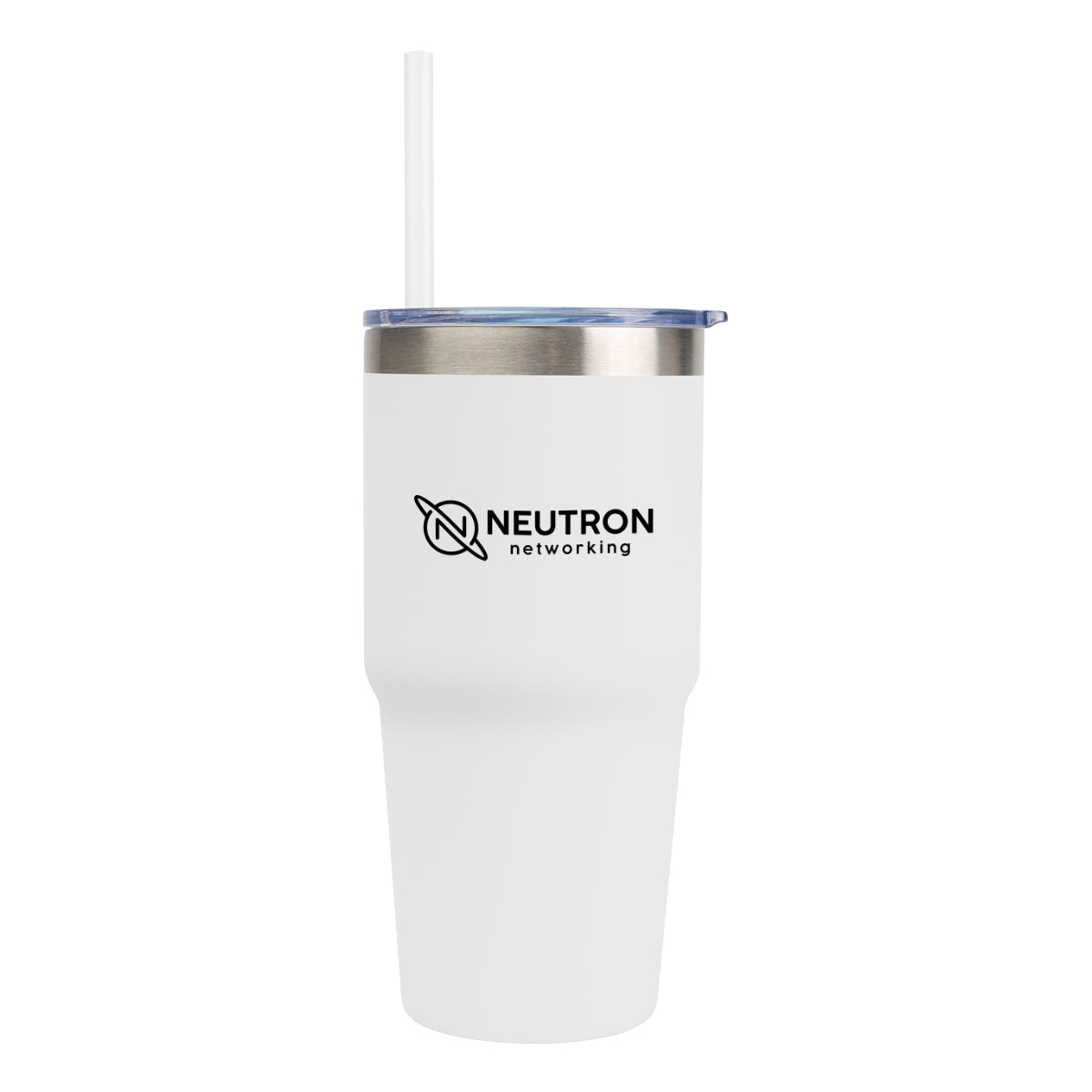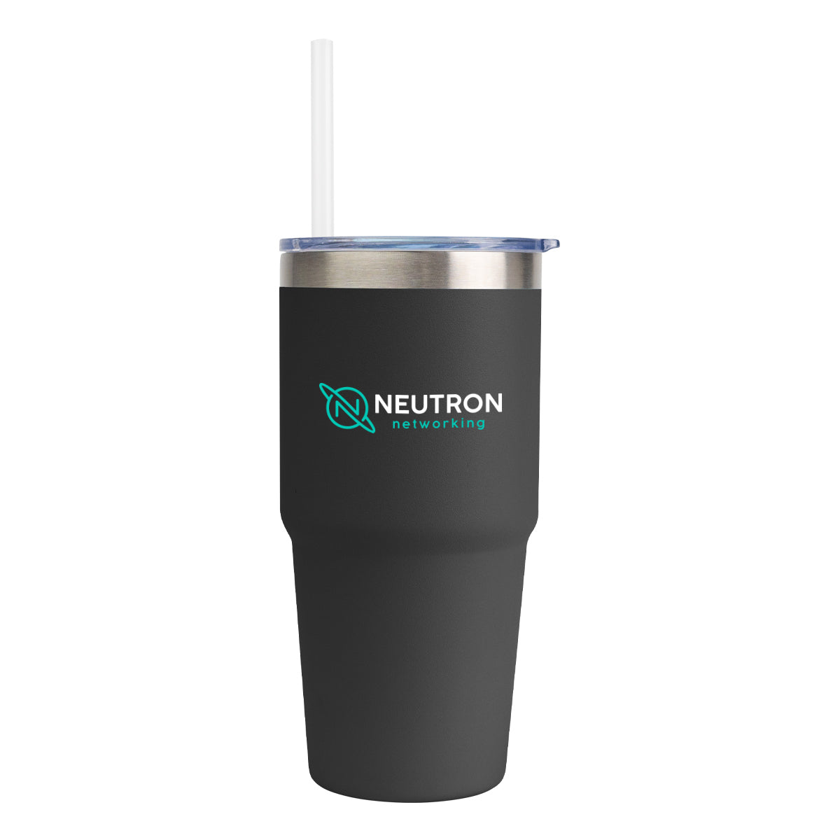 Recycled Stainless Steel Outer And Inner. Recycled PP/AS Lid. Powder Coated Finish. Double Wall Construction For Insulation Of Hot Or Cold Liquids. Snap On, Spill-Resistant Lid With 8 ½" Straw. Meets FDA Requirements. BPA Free. Hand Wash Recommended..