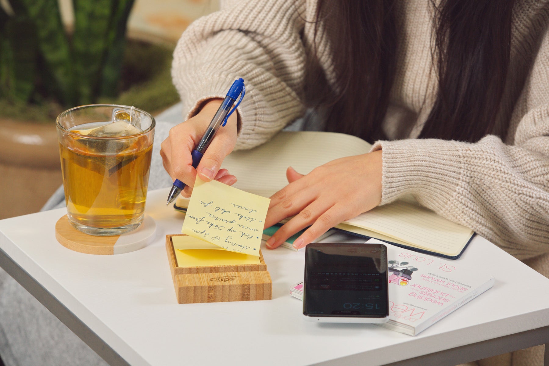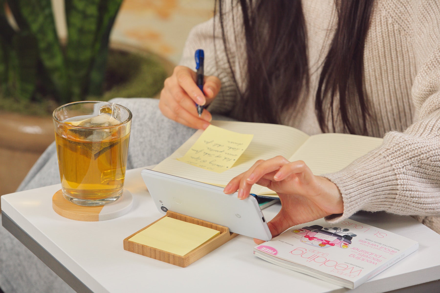 Bamboo Sticky Note Dispenser with Phone Holder