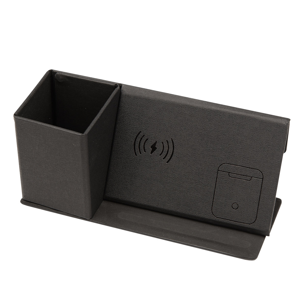 Made Of PU Leather. Charge Qi Enabled Devices Wirelessly By Placing Compatible Device On Top Of Charging Pad. Features A USB Type-C Input (Cord Included). Output: Phone: 15W, Airpods: 5W. Includes Dry Erase Board. Includes Dry Erase Marker With Eraser On Cap. Built In Pen Holder. Foldable. Please Note That Some Computer And Laptop USB Ports May Not Supply Enough Power To Charge A Device Using This Charging Pad. Apple is a trademark of Apple Inc., registered in the U.S. and other countries..