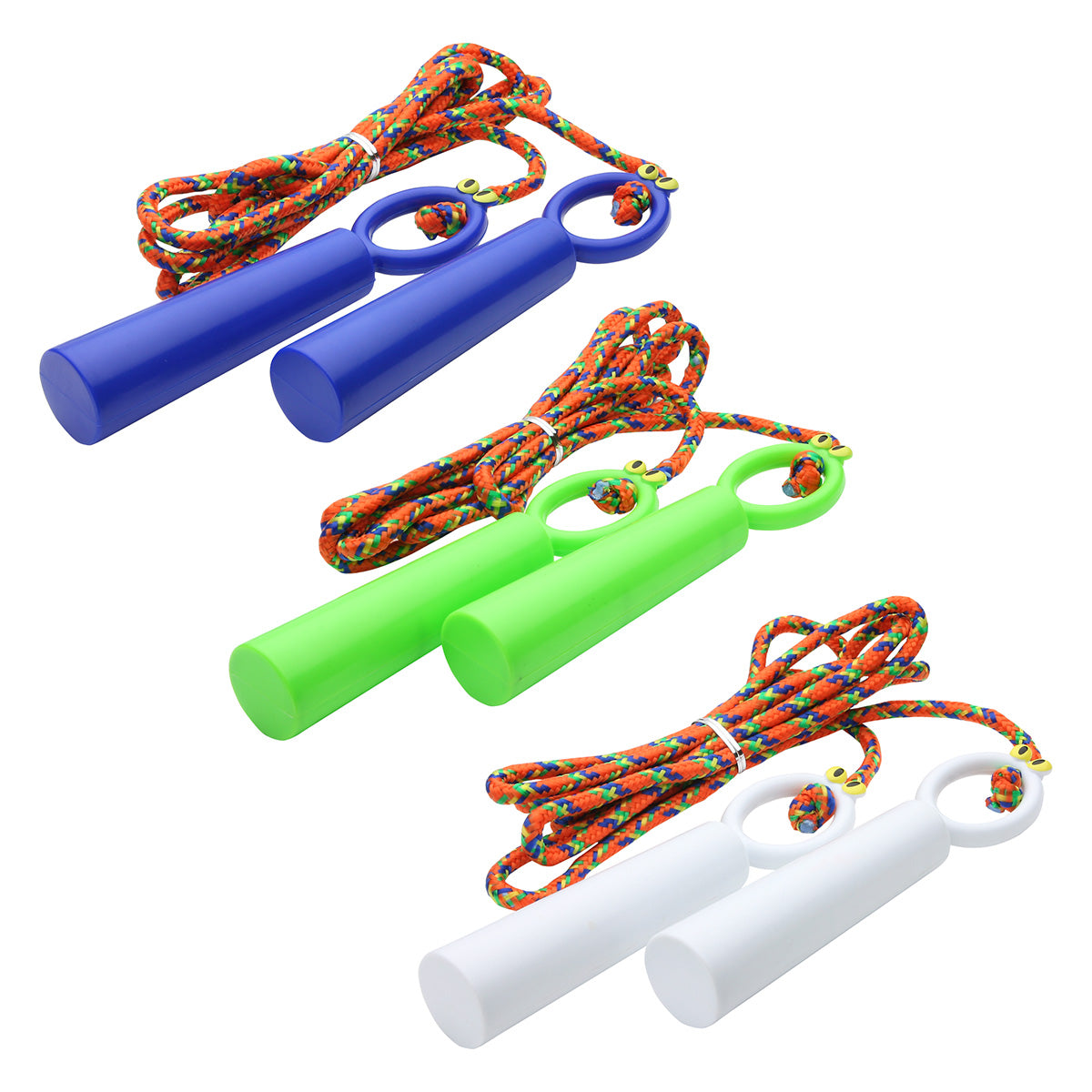 Eight-foot jump rope, Lightweight handles with funny face, Easy-grip handles.