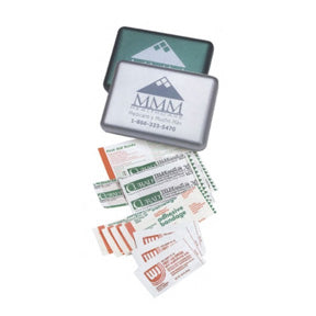Reusable case holds bandages, three first aid cream packets, two adhesive pads, and a first aid guide. You are guaranteed a long-lasting message on this quality kit.