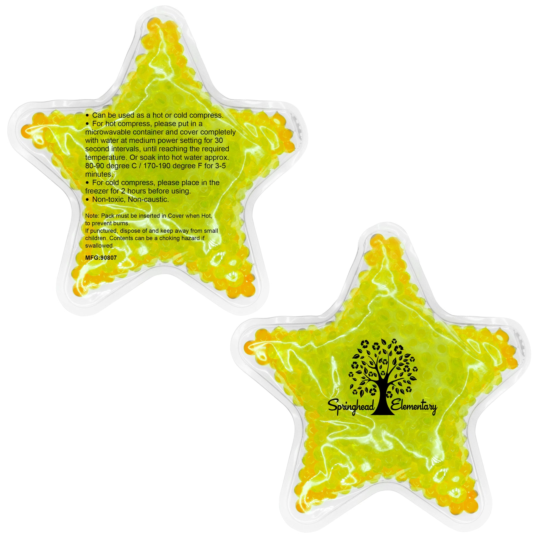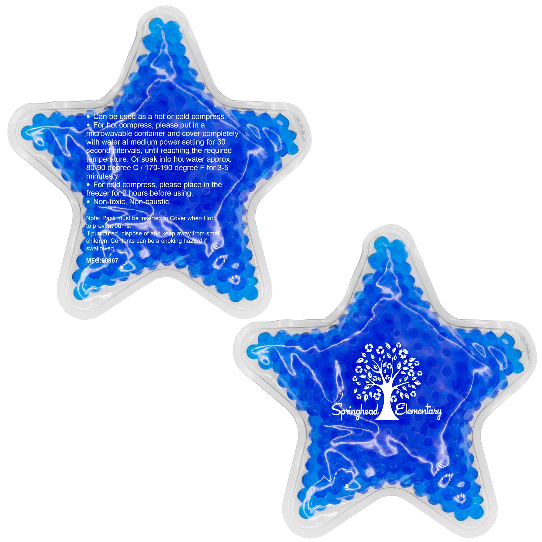 A shining star in any promotion, our star shaped hot cold pack is not only aesthetically pleasing, but also extremely effective. Our packs can be used as both a hot and cold compress and are filled with vibrant color gel beads. Easy to use, this item moves seamlessly from freezer to microwave and can be used again and again. Our TekBeads are filled with a non-toxic, pliable blend of water and glycerine. Instructions for use are printed on the back of each item. Great for Nurse's Offices, workplaces, home, etc.***PLEASE NOTE THAT THE CLEAR PACKS MAY HAVE A YELLOW TINT DUE TO THE TEMPERATURE/CHEMICAL REACTION***.