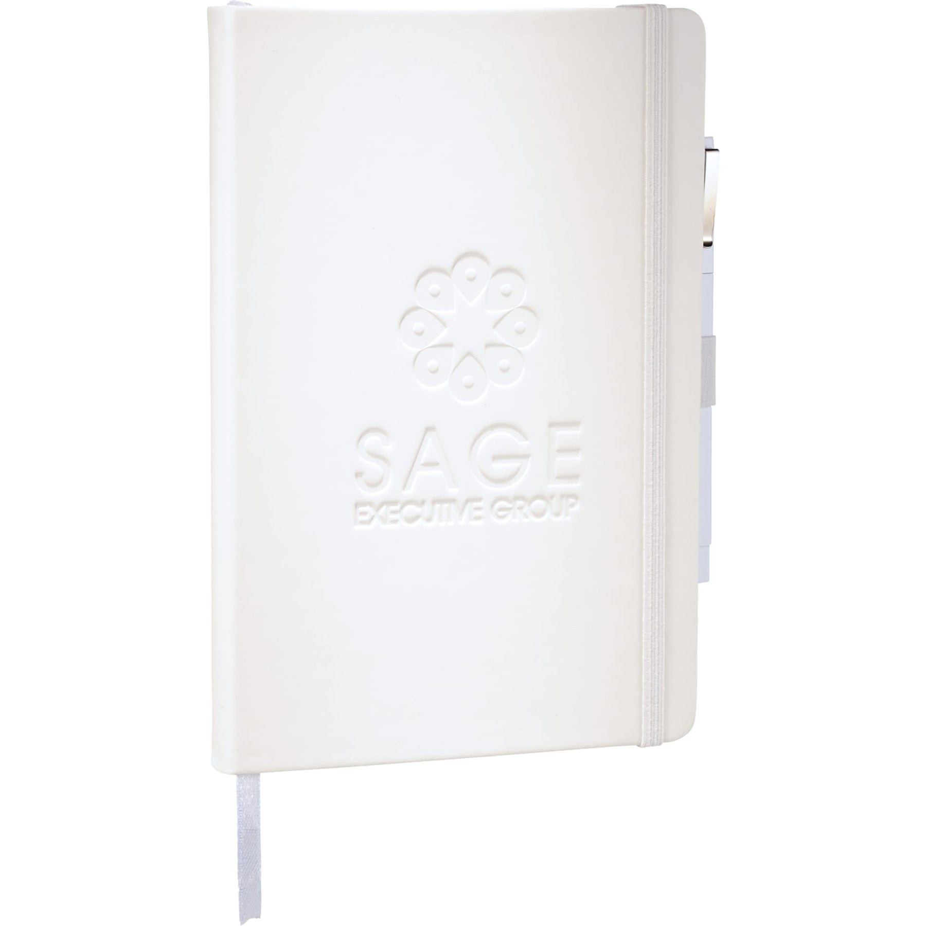 "The Nova Bound Journal Bundle Set includes a Nova Bound Journal (2800-11) and Ambassador Square Ballpoint (6620-31). The Journal features a faux, leather-like hard cover with built-in elastic closure. This custom notebook includes a ribbon page marker and expandable accordion pocket. The Nova Bound Journal Bundle Set includes 96 sheets of lined white paper. This item cannot be configured online. Contact us to order. (2800-11) Nova Bound Journal (6620-31)Ambassador Square Ballpoint Faux, leather-like hard cover Built-in elastic closure Ribbon page marker Expandable accordion pocket 96 sheets of lined white paper This item cannot be configured online".