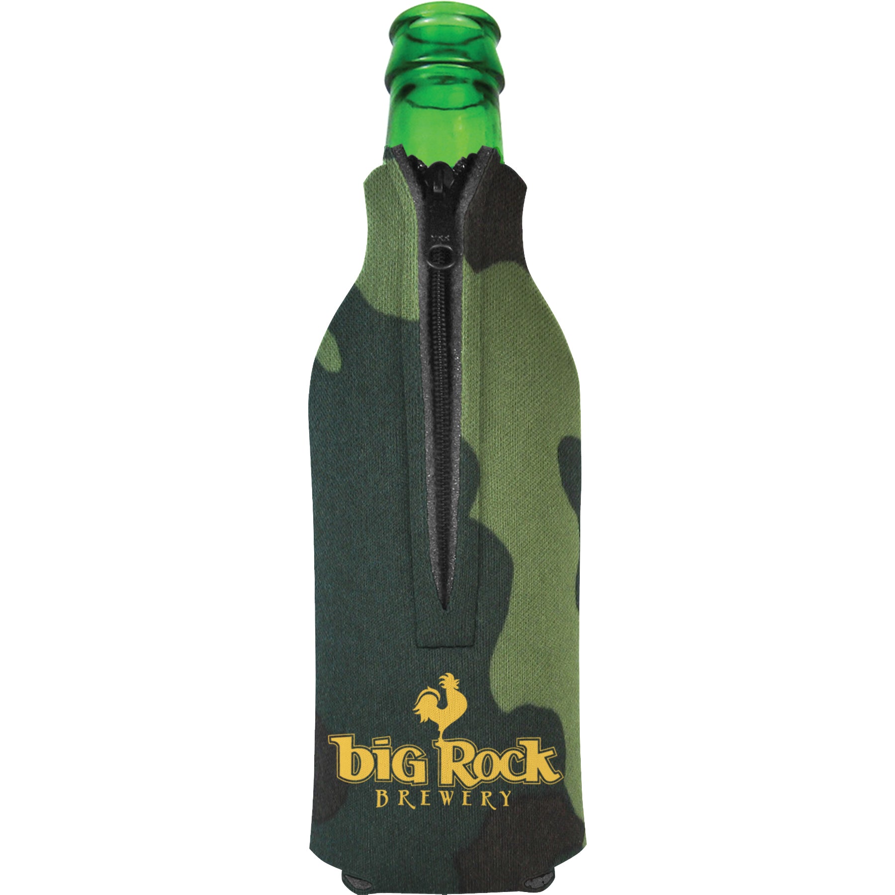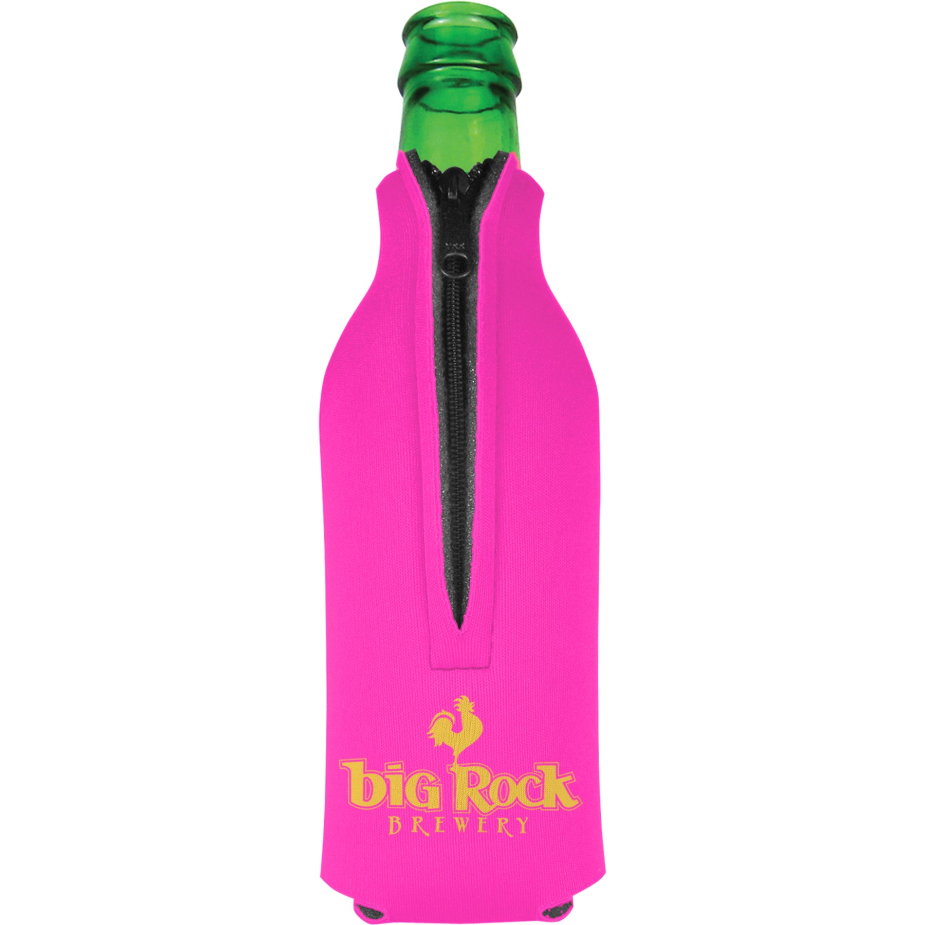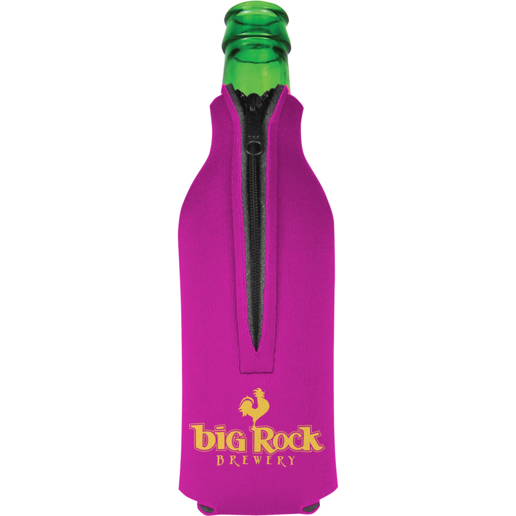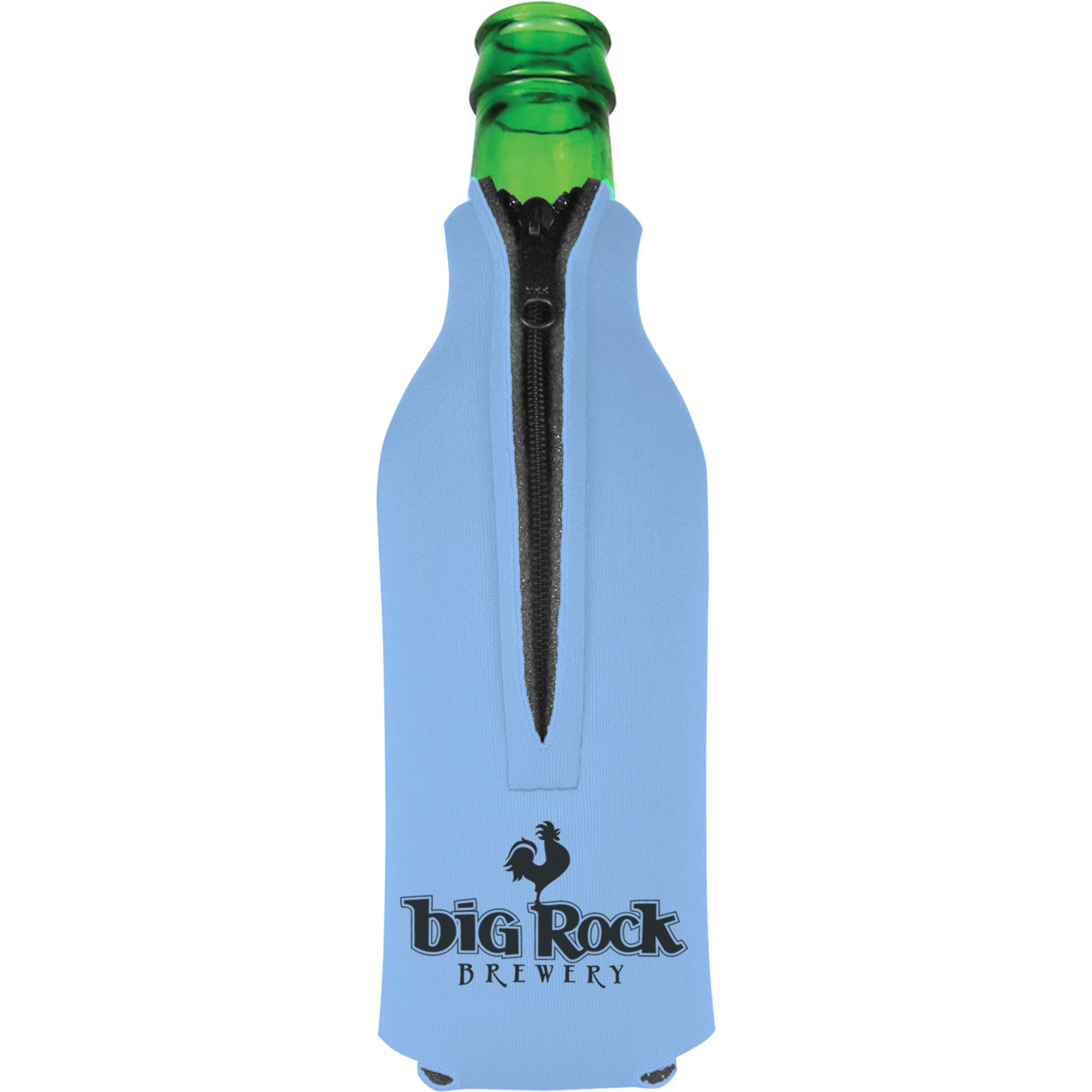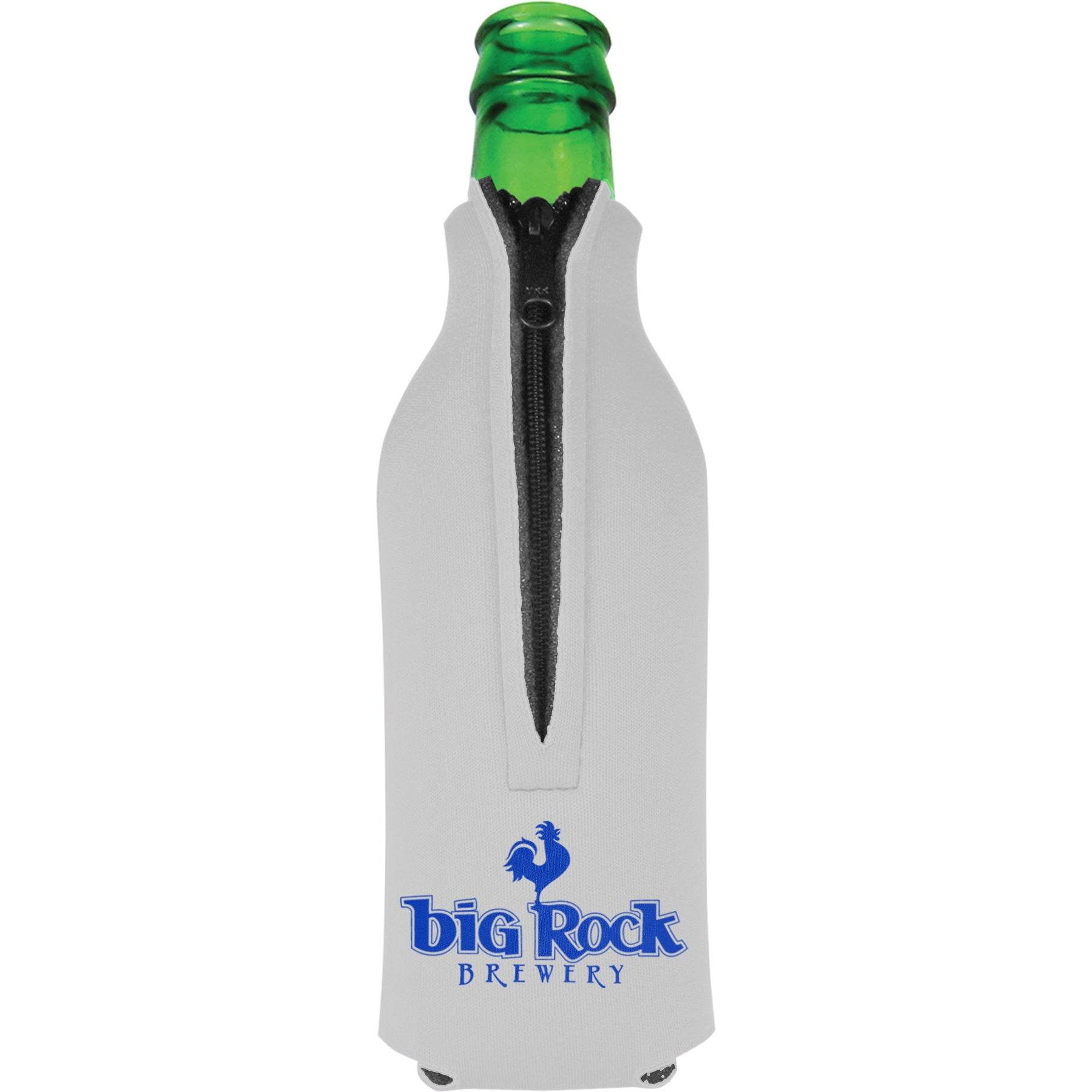 A sleek fit with zippered exit, the Bottle Zipper can cooler fits like a glove. The zippered opening allows for an imprint on the bottom as well as the front and back (additional costs for bottom and back). Made in the USA. Material: Scuba Foam Standard Decoration Includes: 1 Color, 1 Location All Available Decoration Options: Printed: 3.5" W x 2.5" H Front : 3.5" W x 3.5" H Back : 1.75" W x 1.75" H Bottom Click Here For Virtual Proofing Tool [https://www.hpgspectra.com/?item=1015/] Standard Packaging: Bulk Tags: Coolers, Coozies, Coozy, Cozies, Cupholders, Foams, Foamy, Holders, Huggers, Huggies, Koolers, Koozy, Kozy, Insulators, Koolie, Koolies, Koozi, Kozies, Dry, Drink,