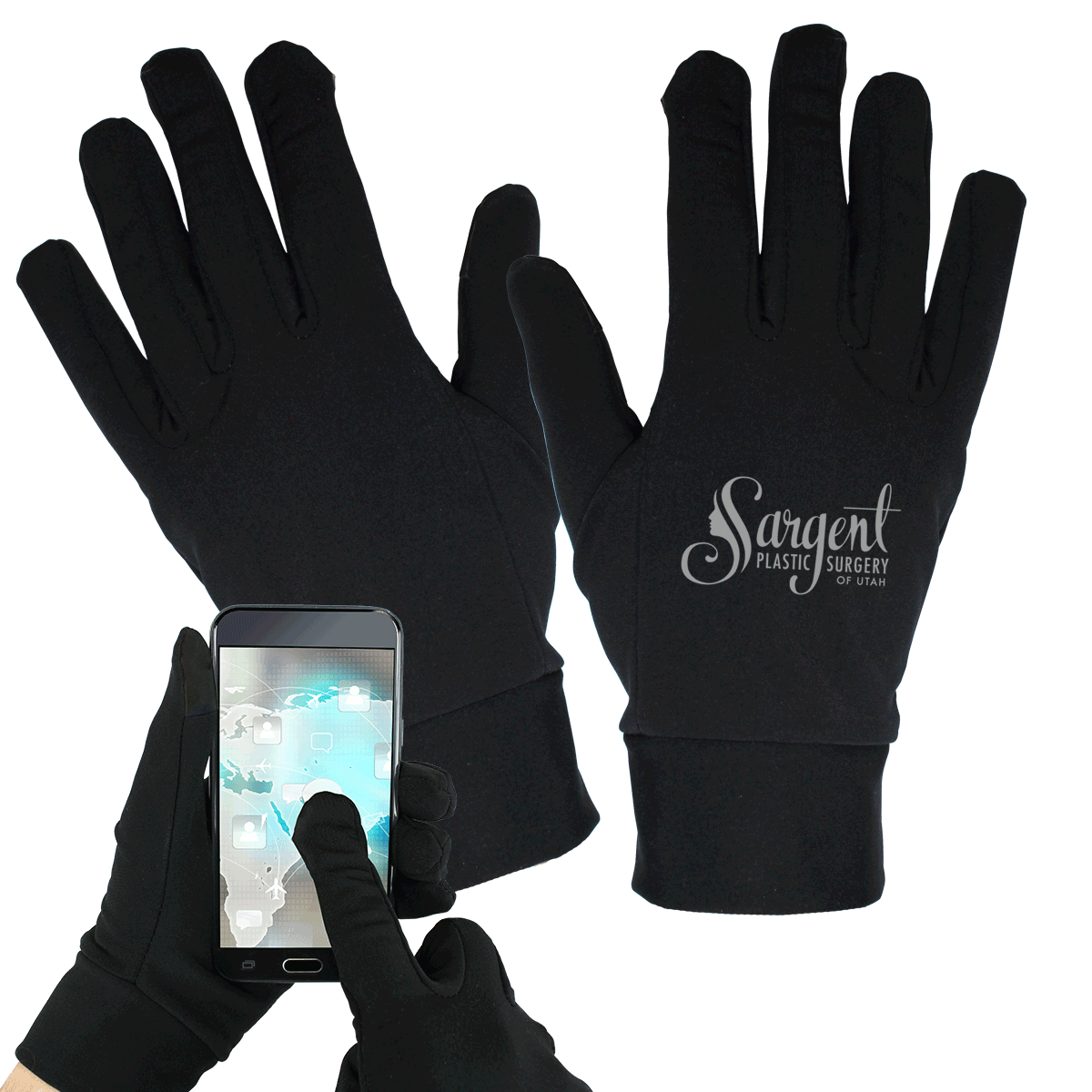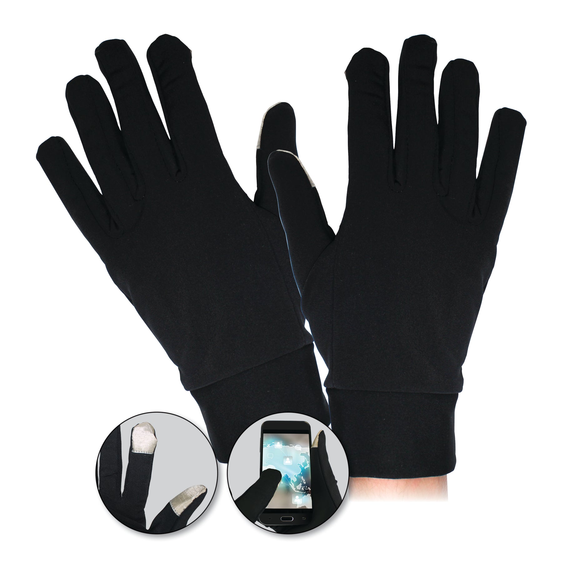 Conductive fingertips provide universal touch screen compatibility Adult size gloves - one size fits most. 85% Polyester 15% Spandex Hand Wash Only