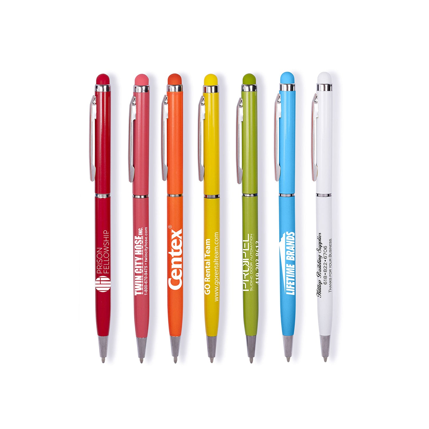 The Debbie Stylus Twist Metal Pen combines modern style with everyday functionality. Its sleek metal body and twist-action ballpoint design offer a smooth writing experience, while the colored touch stylus provides enhanced precision on touchscreen devices.Available in seven vibrant colors, this pen is perfect for businesses looking to make a bold statement. Whether for branding, promotions, or personal use, the Debbie Pen is a stylish and practical choice that stands out in any setting..