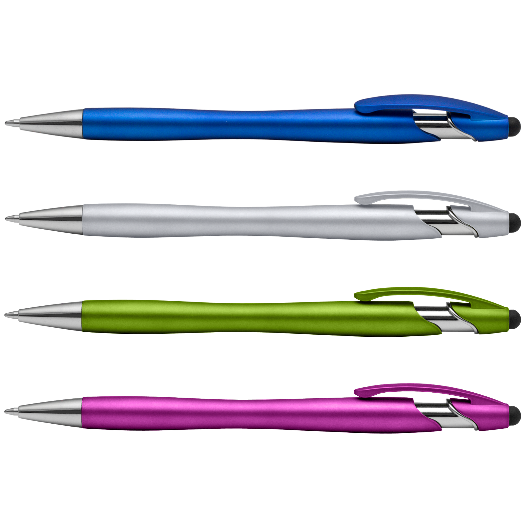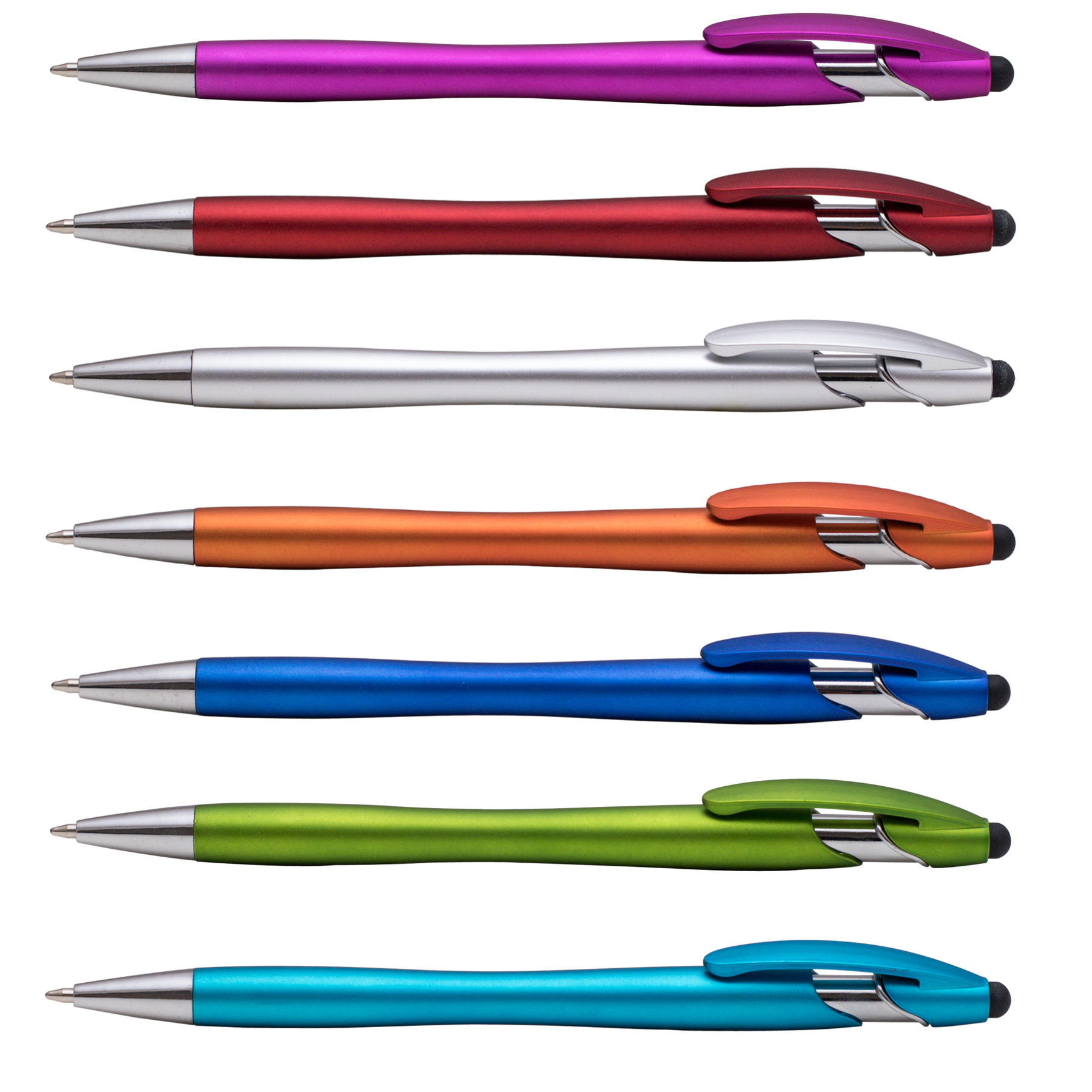 This best-seller is now available with ColorJet for a vibrant, versatile full-color imprint! Grab some extra attention when you give away the La Jolla Stylus to customers and prospects. This metallic pen with a stylus at the top is the perfect 2-in-1 advertising gift. It features a sleek metallic barrel, matching clip, polished chrome accents and a professional stylus.Your logo will pop against the fun, bright metallic barrel colors. Pick up a bundle today to have your customers thanking you for adding style and color to their days!.