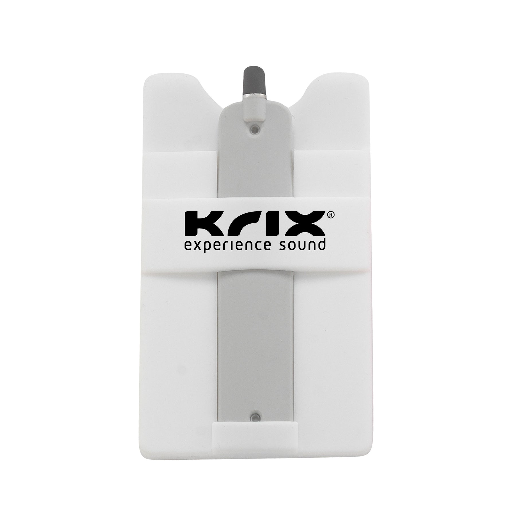 This unique item is truly an all-in-one. Keep your cash, cards and brand logo close to you at all times. Also features a built in stylus & stand. This item attaches to your cell phone with adhesive glue and can hold up to three cards securely. The added functionality of the silicone stand allows for easy viewing. Wallet comes in many different color options, stylus comes in cool grey..