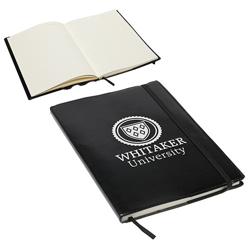Our Conclave Journal is made of a faux leatherette cover and includes a refillable 80-sheet paper pad using 80GSM Ivory ruled paper with date field, ribbon bookmark, elastic ribbon closure, pen loop and business card pocket..