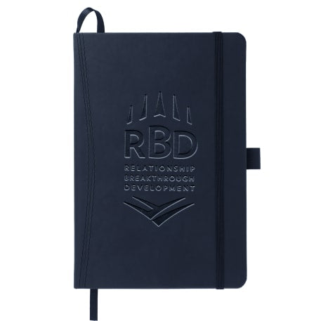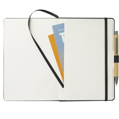 The 5.75" x 8.5" FSC® Mix Pedova™ Pocket Bound Journal features a stitched hard cover, elastic pen loop, and built-in elastic closure. Includes a corresponding cover color ribbon page marker and expandable accordion pocket. Includes 80 sheets of FSC® Mix white lined paper. Pen is not included..