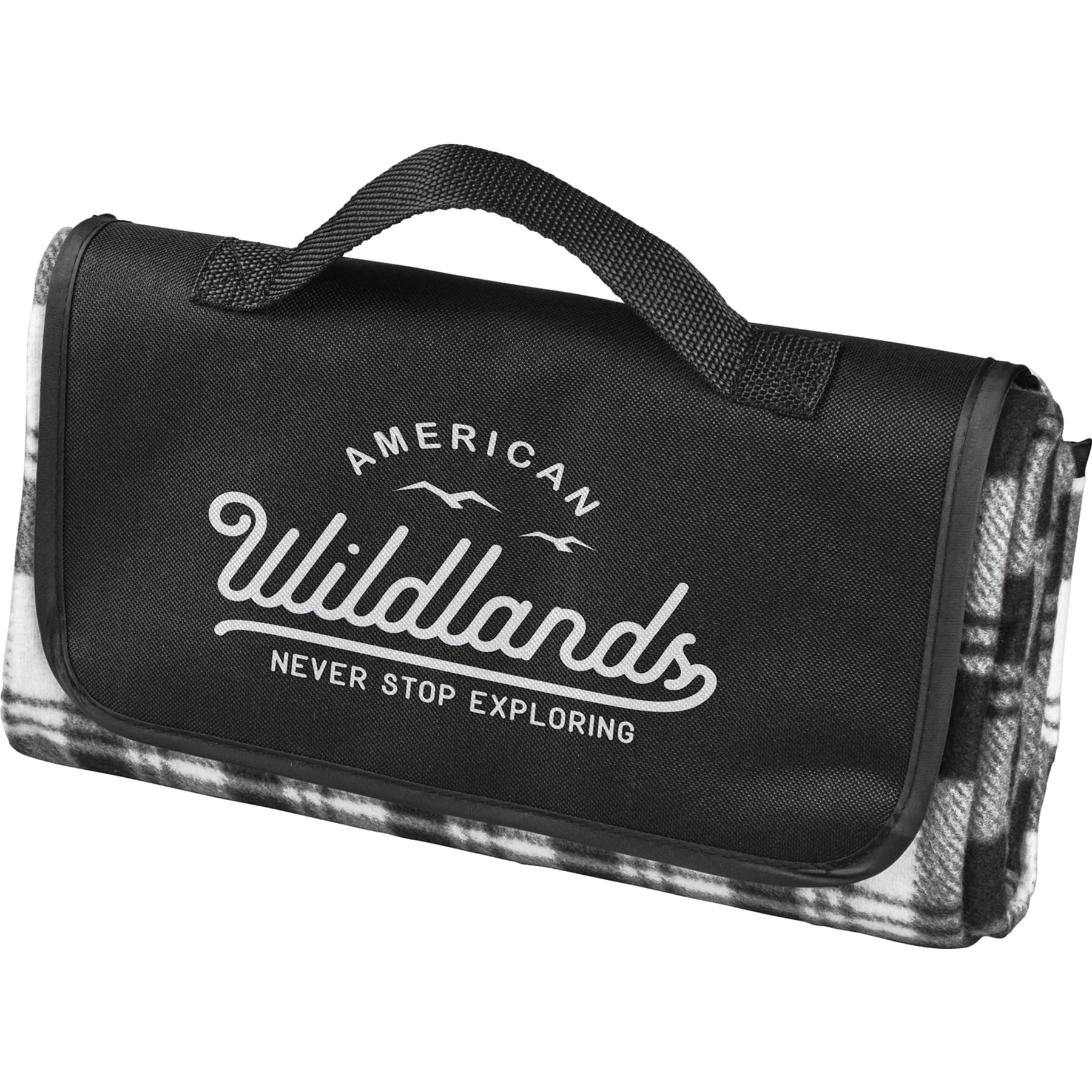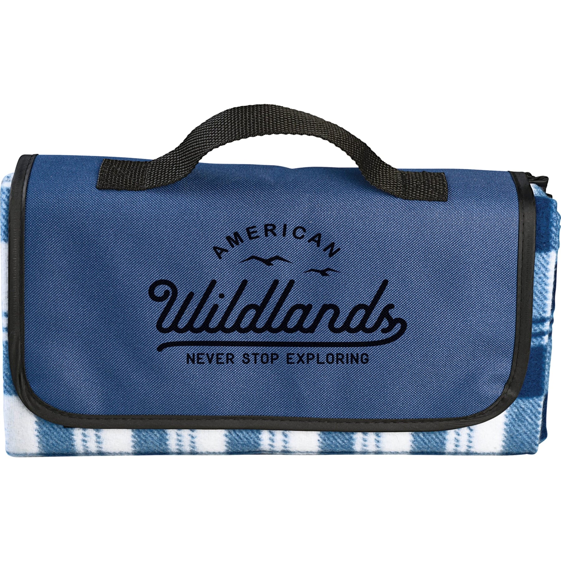 Water resistant backing. Blanket conveniently folds into compact size with hook and loop closure and carry handle. Blanket measures 47" x 52" unfolded and 12" x 6.3" folded. Blanket weight: 358 grams. This blanket is spot clean only..