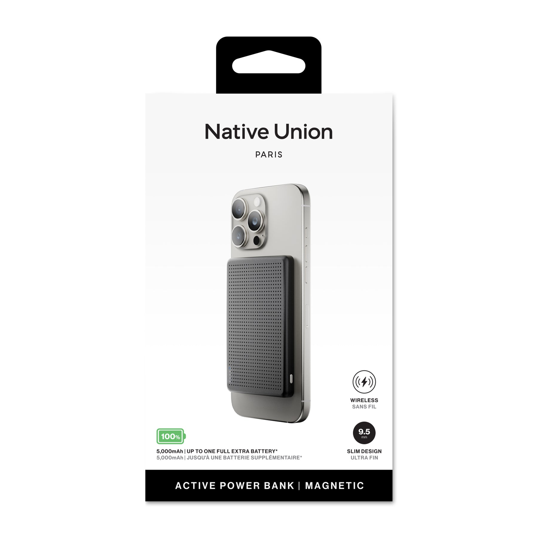 Power that moves with you. The Native Union Active Power Bank 5000mAh is an ultra-slim MagSafe-compatible charger delivering up to 15W wireless or 20W wired fast charging. Strong magnetic hold, pass-through charging, and built-in safety features keep your devices powered securely on the go. Fully charges an iPhone 15 Pro in one go—perfect for travel, work, or daily adventures..