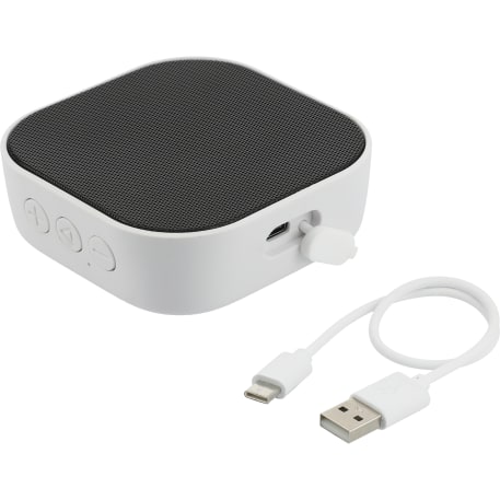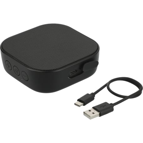 The Whammo 2.0 Bluetooth® Speaker packs quality sound into a compact size. The battery lasts up to four hours at max volume, and it can be fully charged in three hours. The built-in microphone and music controls lets you make or receive calls while controlling the audio. The Bluetooth® working range is 10 meters (33 feet). Includes Type-C charging cable. Three-watt speaker output. Giftbox and manual are made from FSC®-certified material..