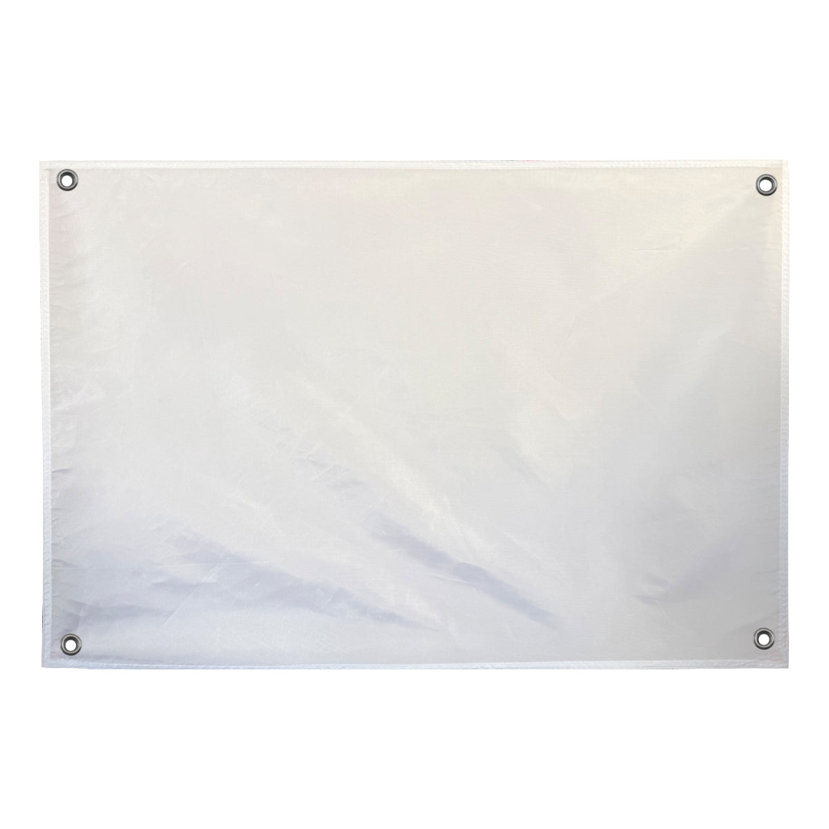 Made Of 100% 120D Polyester. 3.3 Oz. 1 Grommet On Each Corner. Features Edge-To-Edge Full Color Imprint..