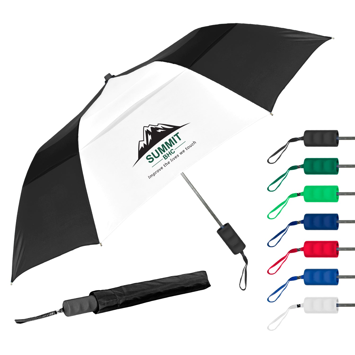 Keep calm, dry and colorful even when it’s raining sideways. With a classic look and trendy color options, The Vented Windproof Umbrella has you covered with a frame designed to return to its original shape, even if turned inside-out by a powerful gust. - Each panel of the umbrella’s canopy contains a wind venting passage that allows strong winds to pass through and minimizes potential wind breakage to the umbrella’s frame. - Arc Size: 42'' - Number Of Panels: 8 - Diameter: 38'' - Length When Closed: 15''