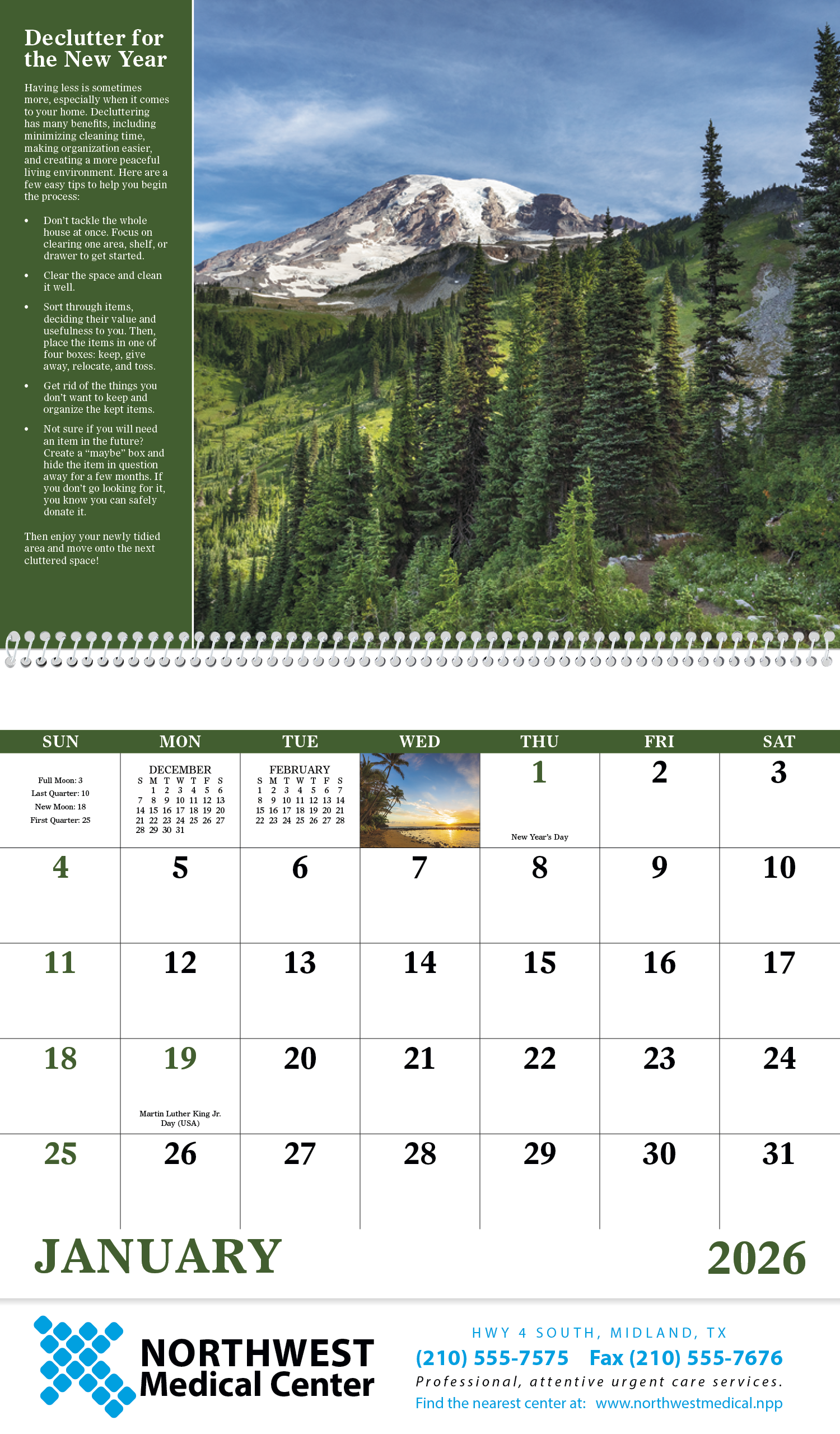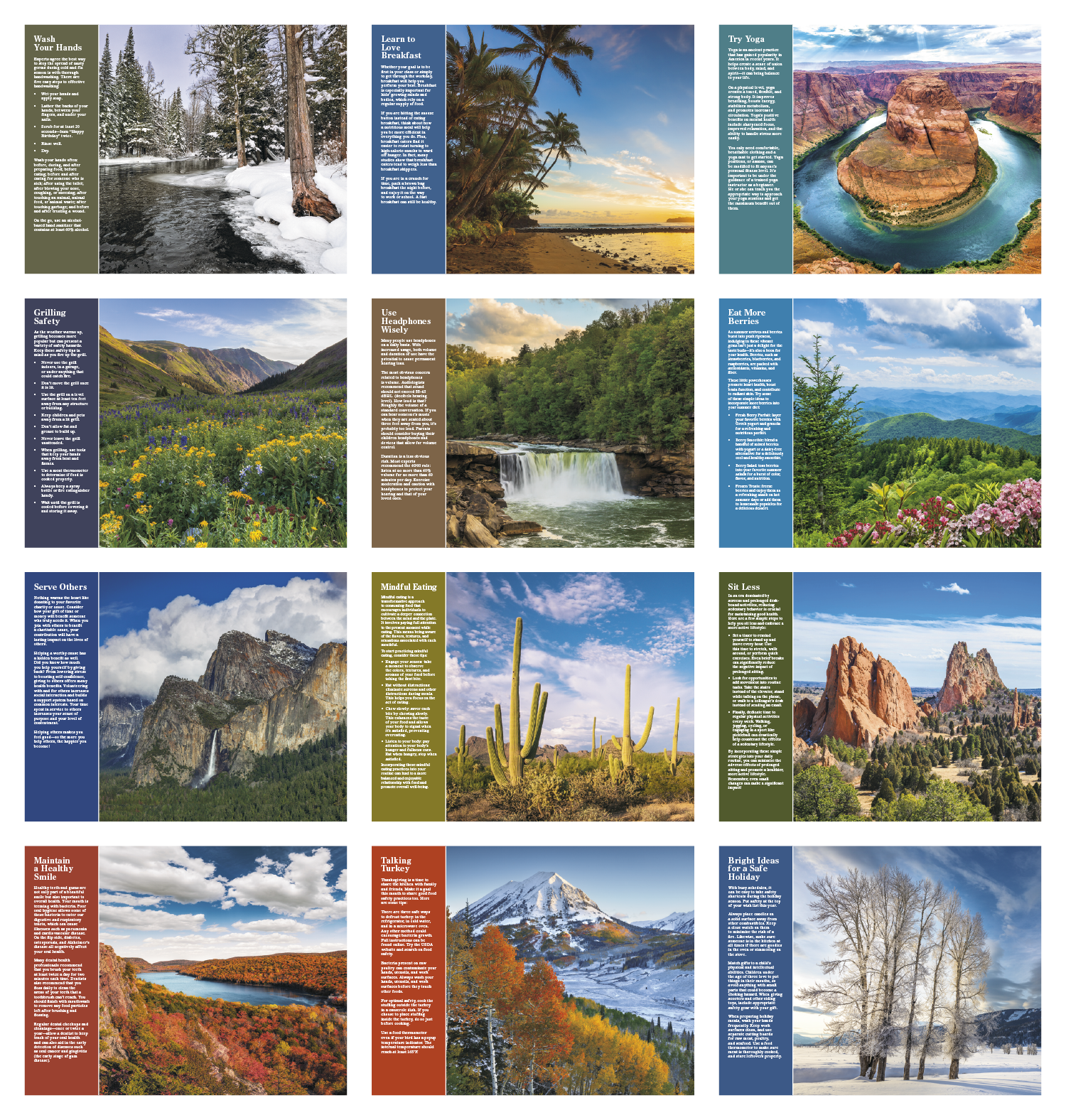 Get your healthy on. Each month you'll be treated to a beautiful landscape image and a tip for improving your health. The FSC® label means that the materials used for this product come from well-managed FSC®-certified forests and other controlled sources..