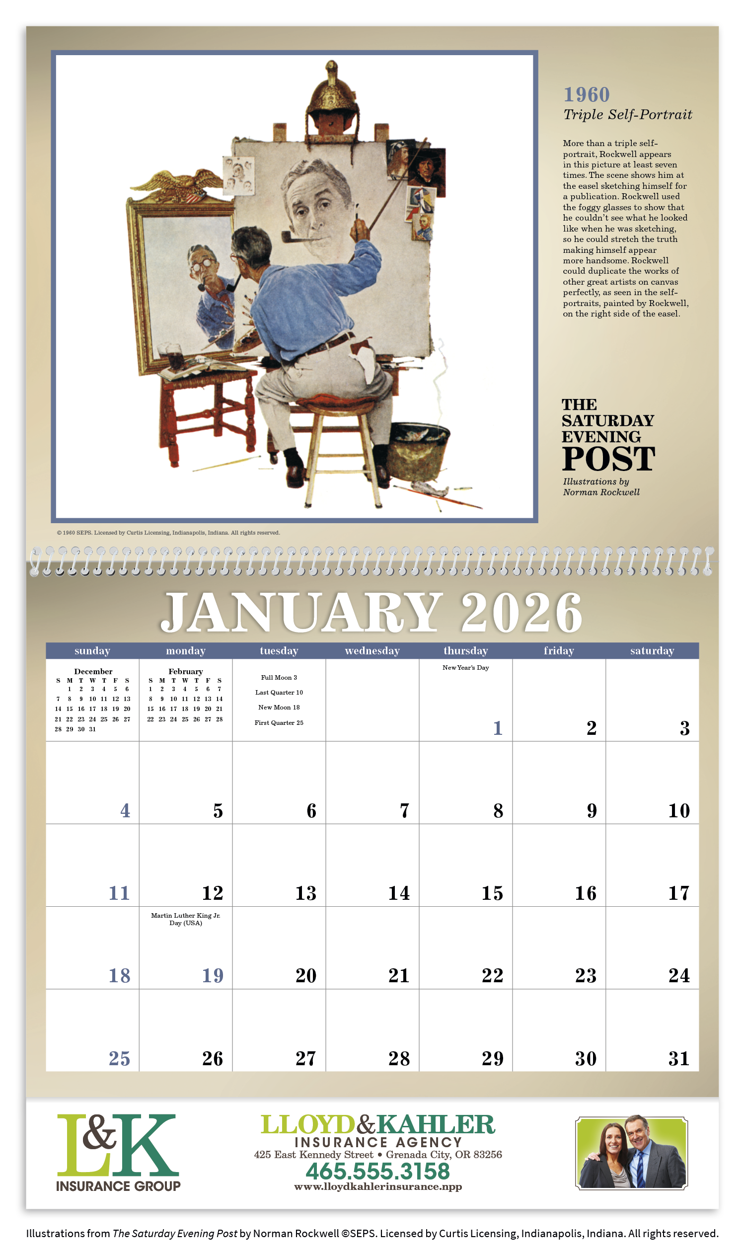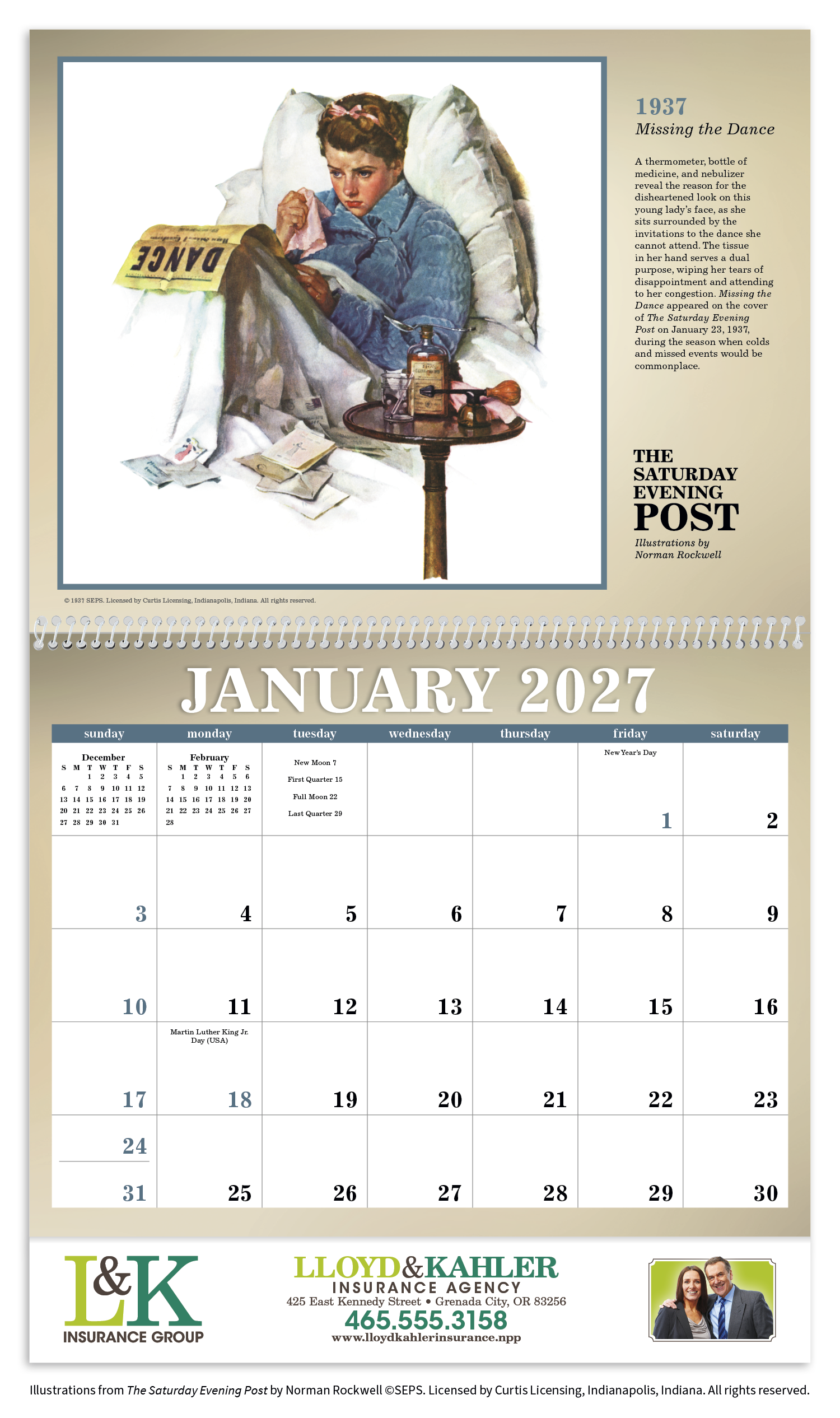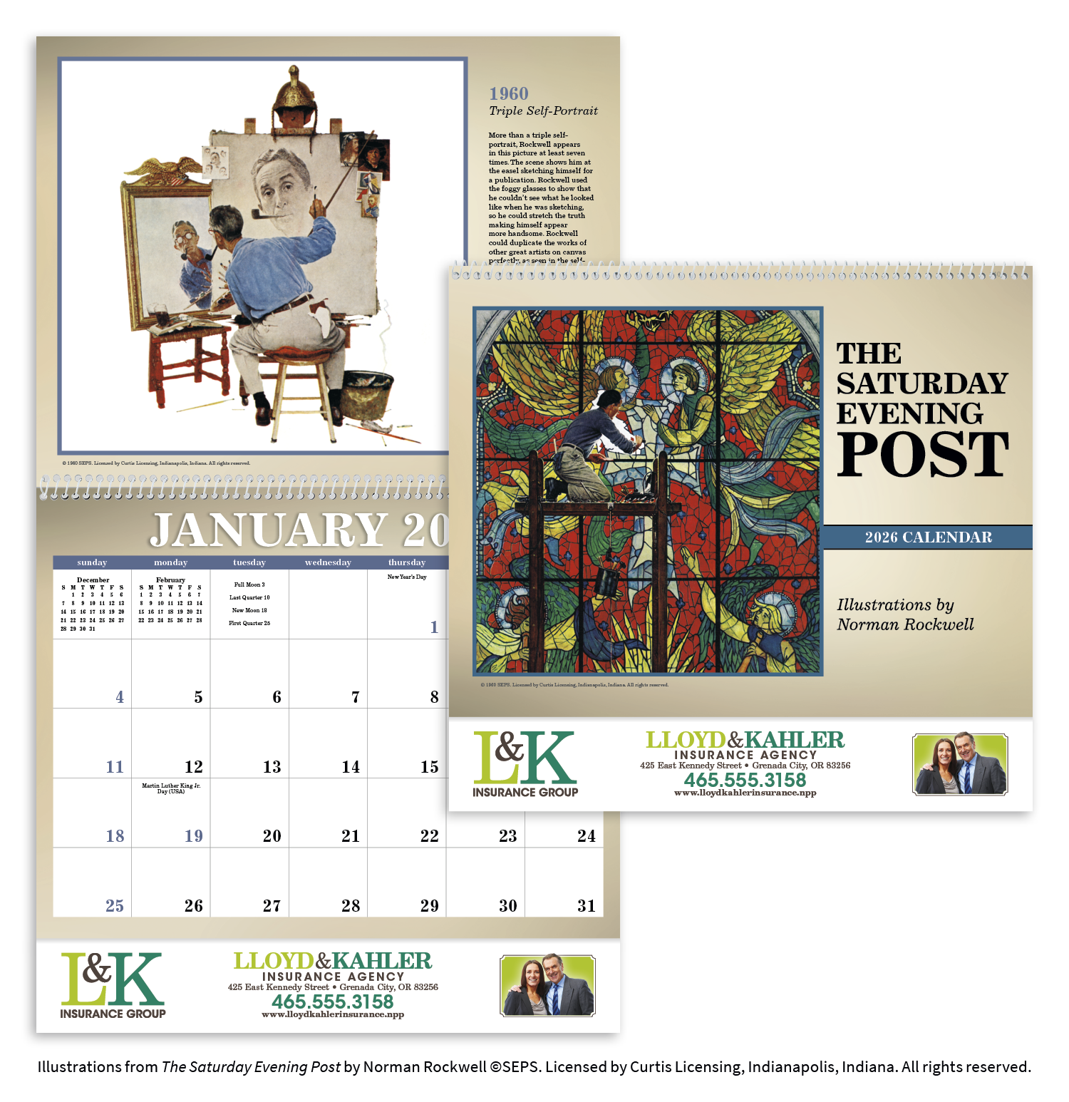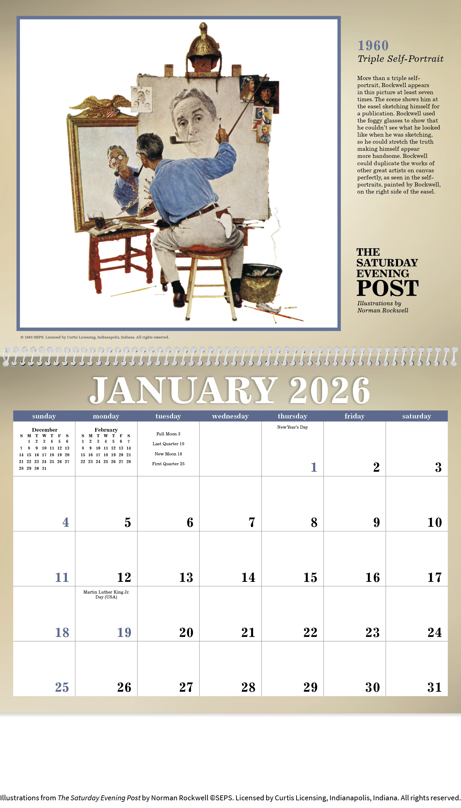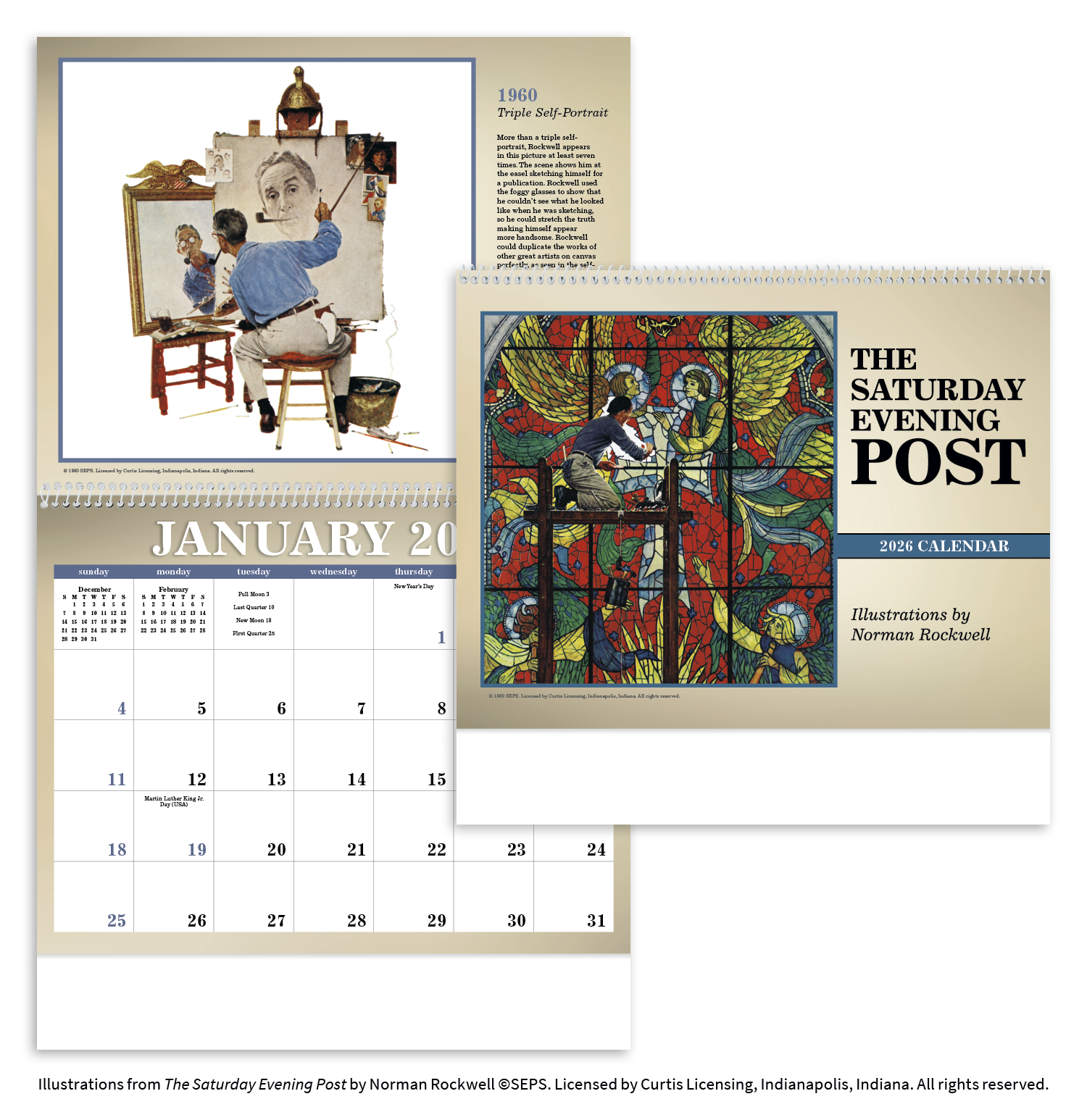 The Saturday Evening Post Illustrations by Norman Rockwell.Give your customers a touch of nostalgia with historic Rockwell images and a classic calendar design. The FSC® label means that the materials used for this product come from well-managed FSC®-certified forests and other controlled sources..