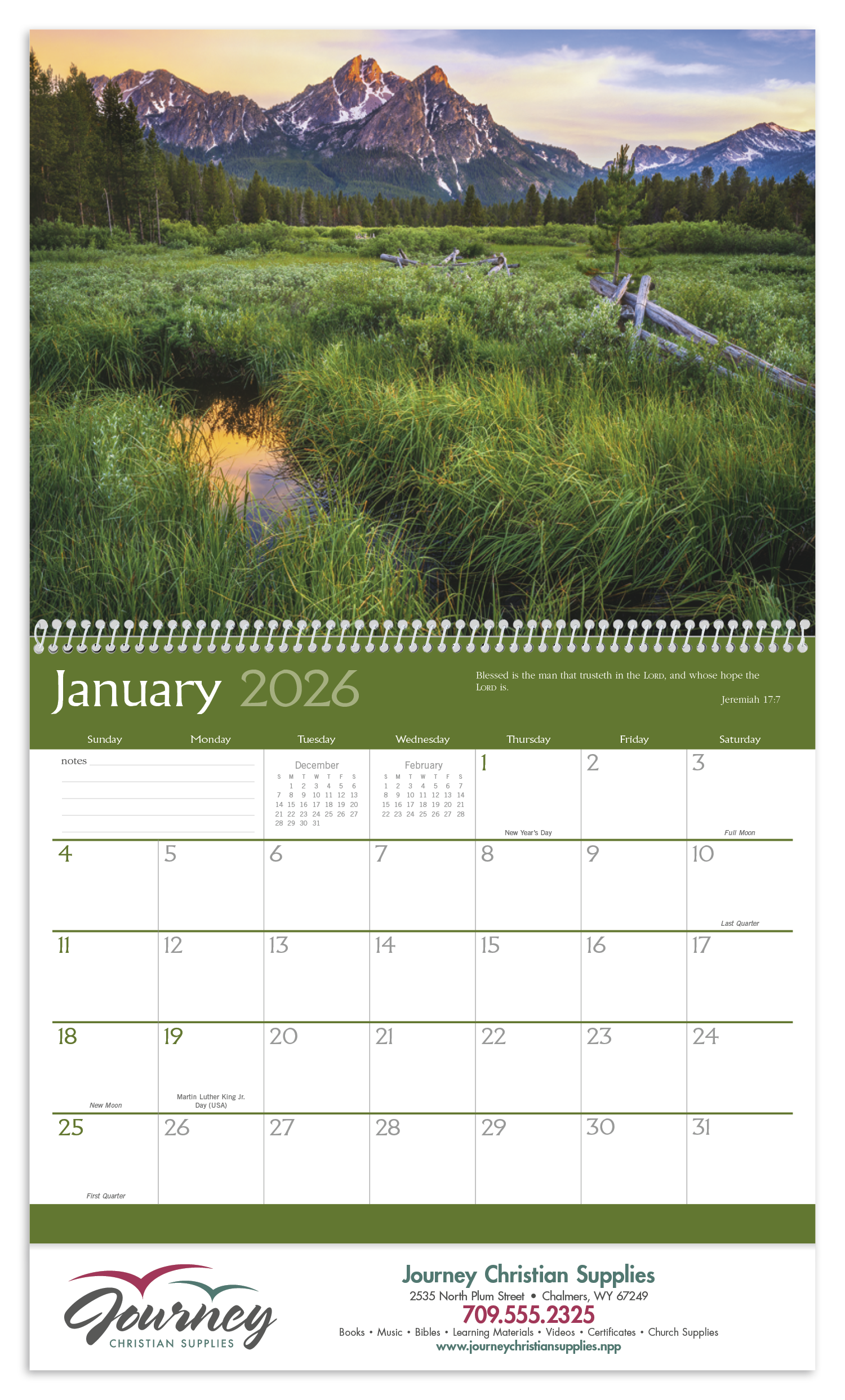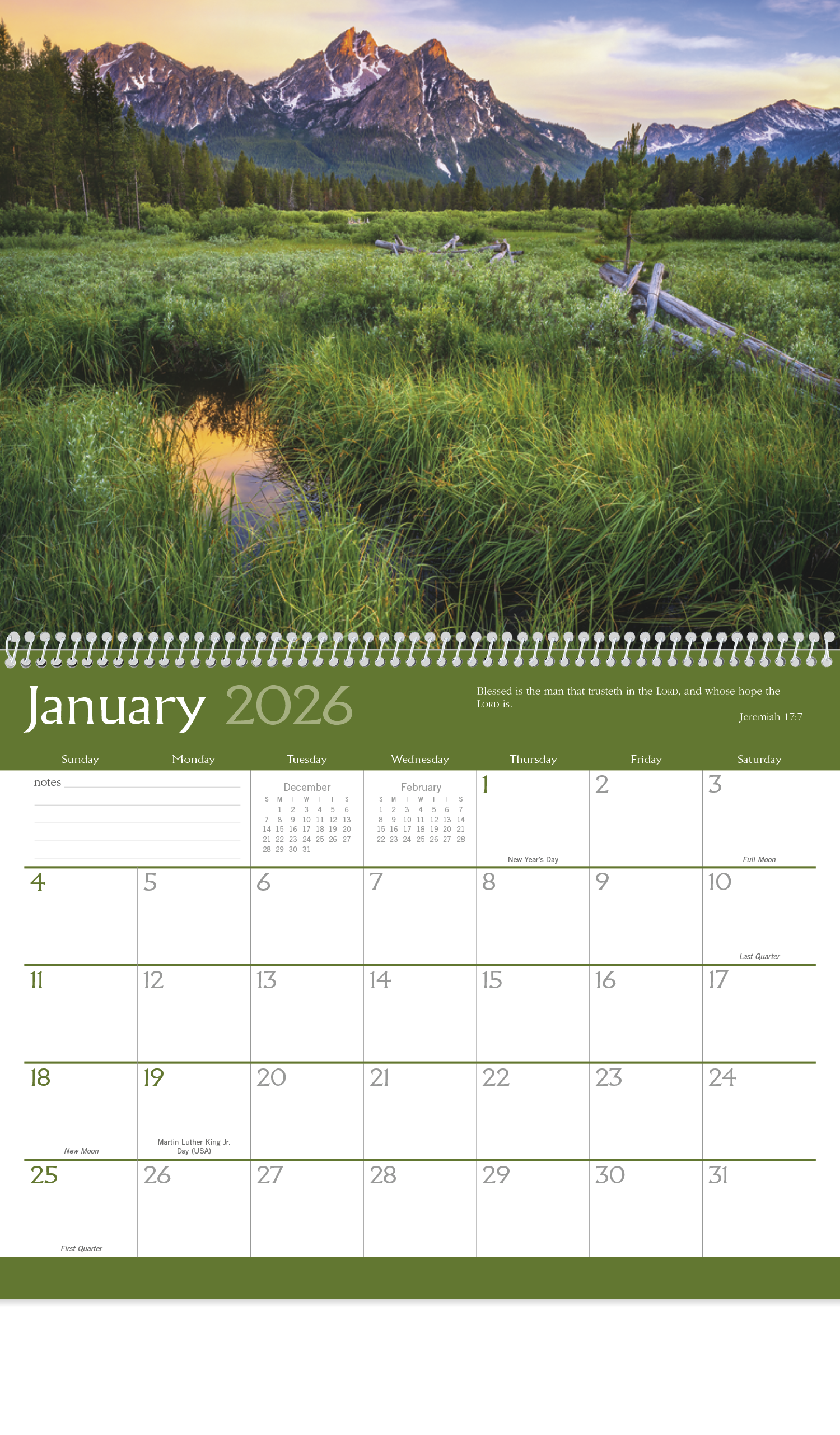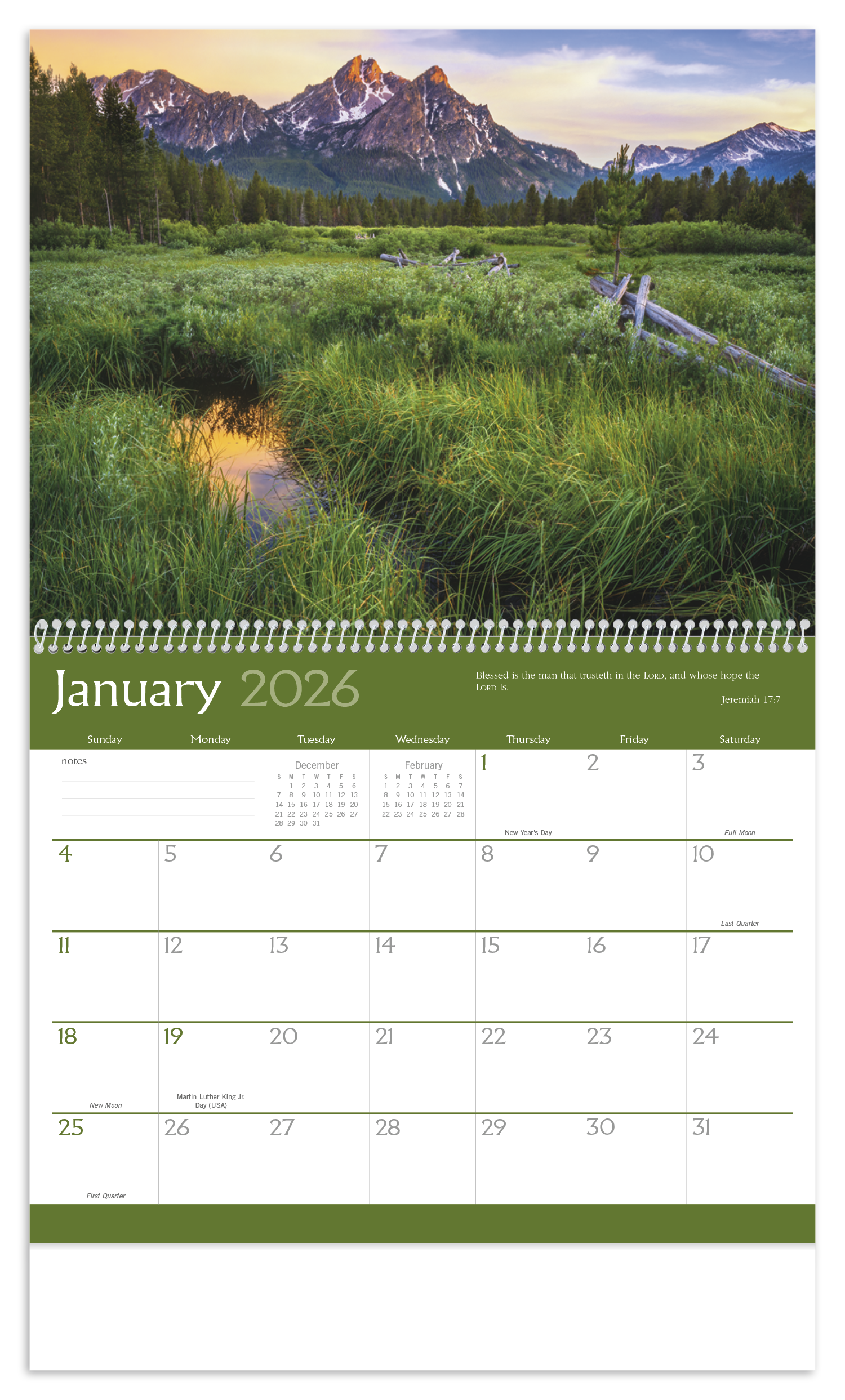 The landscape pictures in this calendar are paired with quotations from the King James version of the Bible. The FSC® label means that the materials used for this product come from well-managed FSC®-certified forests and other controlled sources..