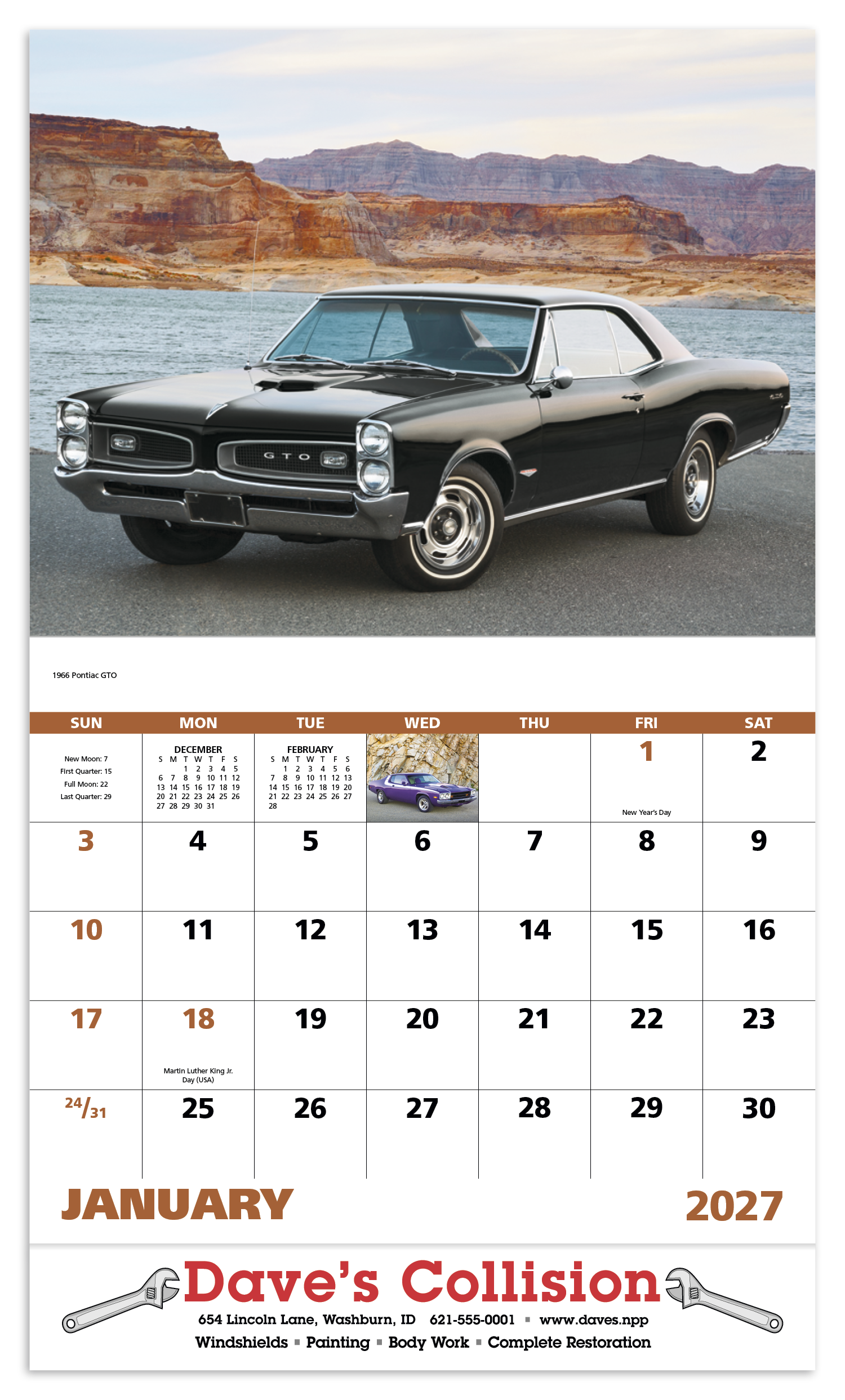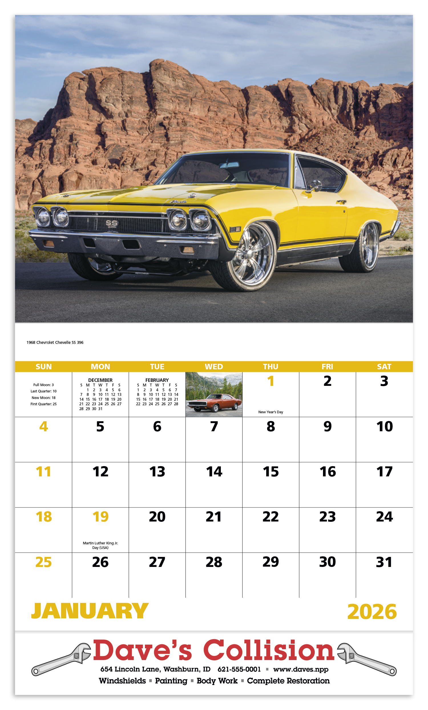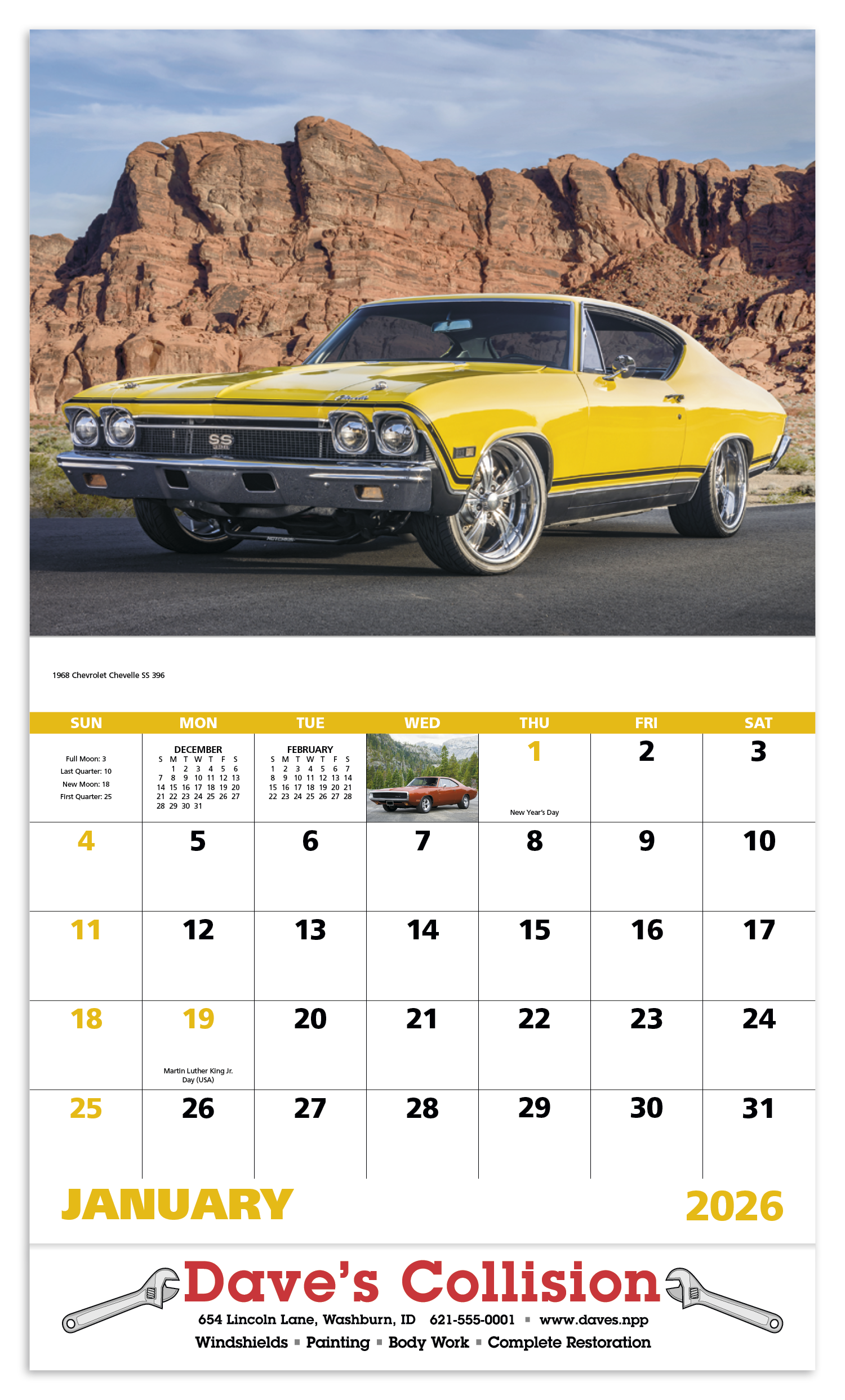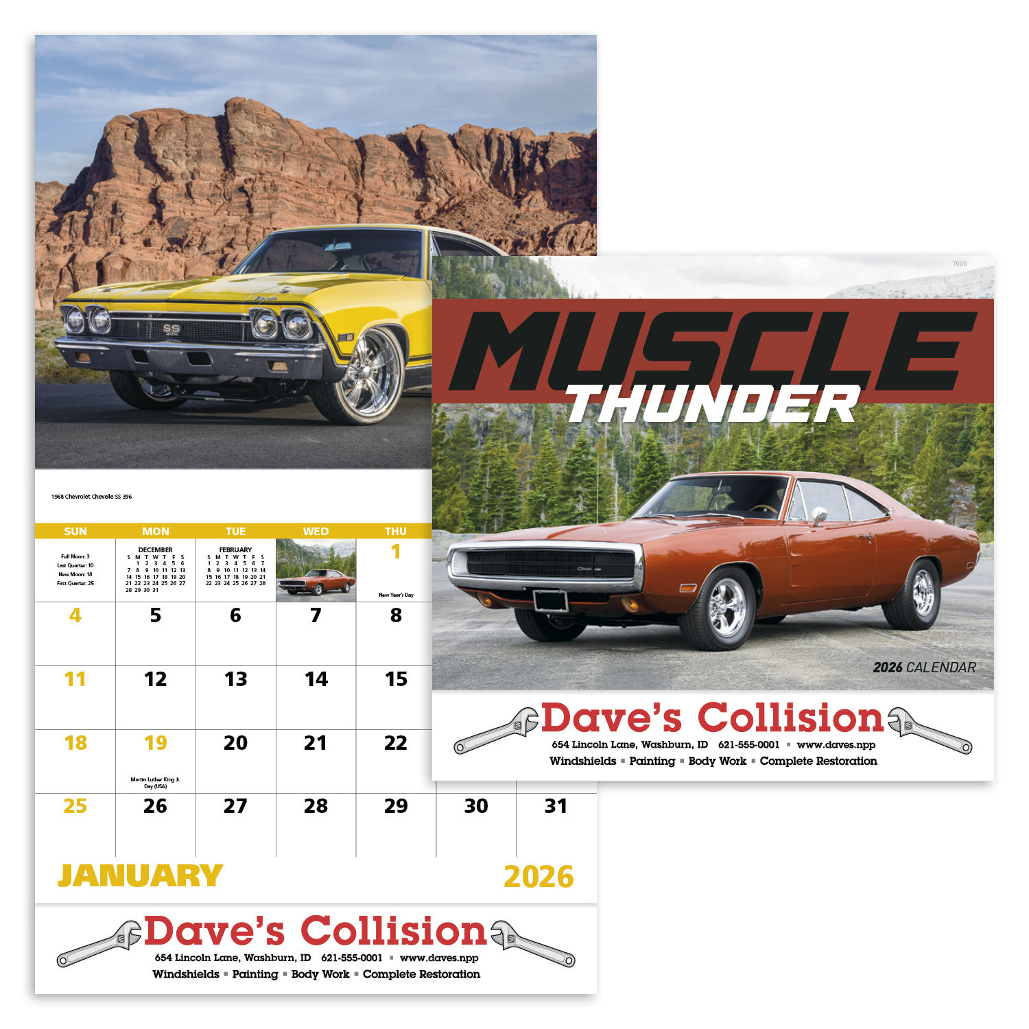 Relive the excitement of the muscle car era as 13 powerful street cars rev to life on this calendar. The FSC® label means that the materials used for this product come from well-managed FSC®-certified forests and other controlled sources..