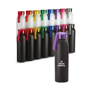 22 oz. single wall aluminum sports bottle with satin finish. Fits most cup holders. Spill Proof