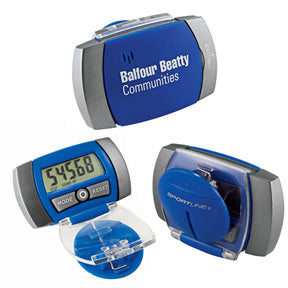Patented design ensures accurate step/distance measurement. Counts steps to 99,999. Convertable count up and count down input feature. Alarm sounds when target goal is reached. One button reset. Spring loaded belt clip. 1-year warranty. Button cell battery. Includes a 1-year online digital subscription to Men`s or Women`s Health Magazine.