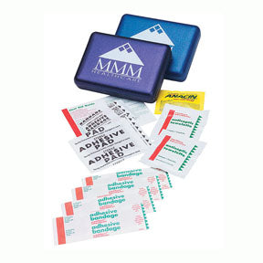 Slim and trim, this compact kit contains an assortment of bandages, antiseptic towelettes, Bayer aspirin, and adhesive pad, and a first aid guide.