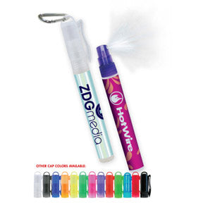 Antibacterial Hand Sanitizer Pocket Spray 0.33oz / 10 ml in translucent frosted tube. Includes full color process white decal for your retail look.