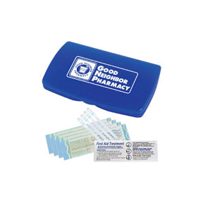 Ultra-trim case contains 4 Swabplus, antiseptic swabs, 4 latex-free vinyl bandages and instructions.
