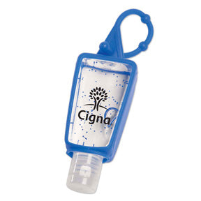 1 oz. antibacterial gel bottles come with an adjustable silicone loop that easily clips onto a purse, belt or backpack Scent choices include: Red - Watermelon, Green - Apple and Blue - Blueberry