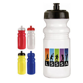 Cycle bottle, 20 oz. Made in the U.S.A. Push `n pull cap with wide mouth opening. Fits most bike holders. Easy to squeeze material. BPA free. Hand wash only. If white or frosted product is not used, there may be a slight color variation in the imprint.