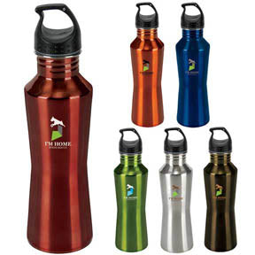 Your logo will shine on this shapely bottle. 18/8 stainless steel single wall w/ Screw-on lid; Wide-mouth top for ice cubes