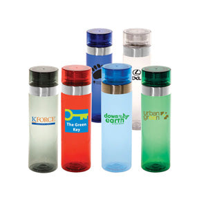 27 oz. copolyester water bottle, BPA free. Slim, sleek design with screw top lid.