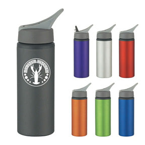 24 oz. Aluminum bike bottle with screw on, spill-resistant sip top lid. Gray top. Meets FDA requirements.