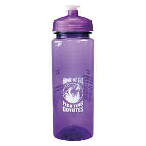 The lustrous, high gloss finish bottle features a 3-sided modern design comfortable to hold. Reusable and recyclable, the bottle features a wide-mouth lid making it easy to add ice cubes. These BPA free bottles have a leak-resistant push-pull lid, and fit most auto cup holders. Hand wash only. Ideal for sports teams, fitness centers, schools and corporations.